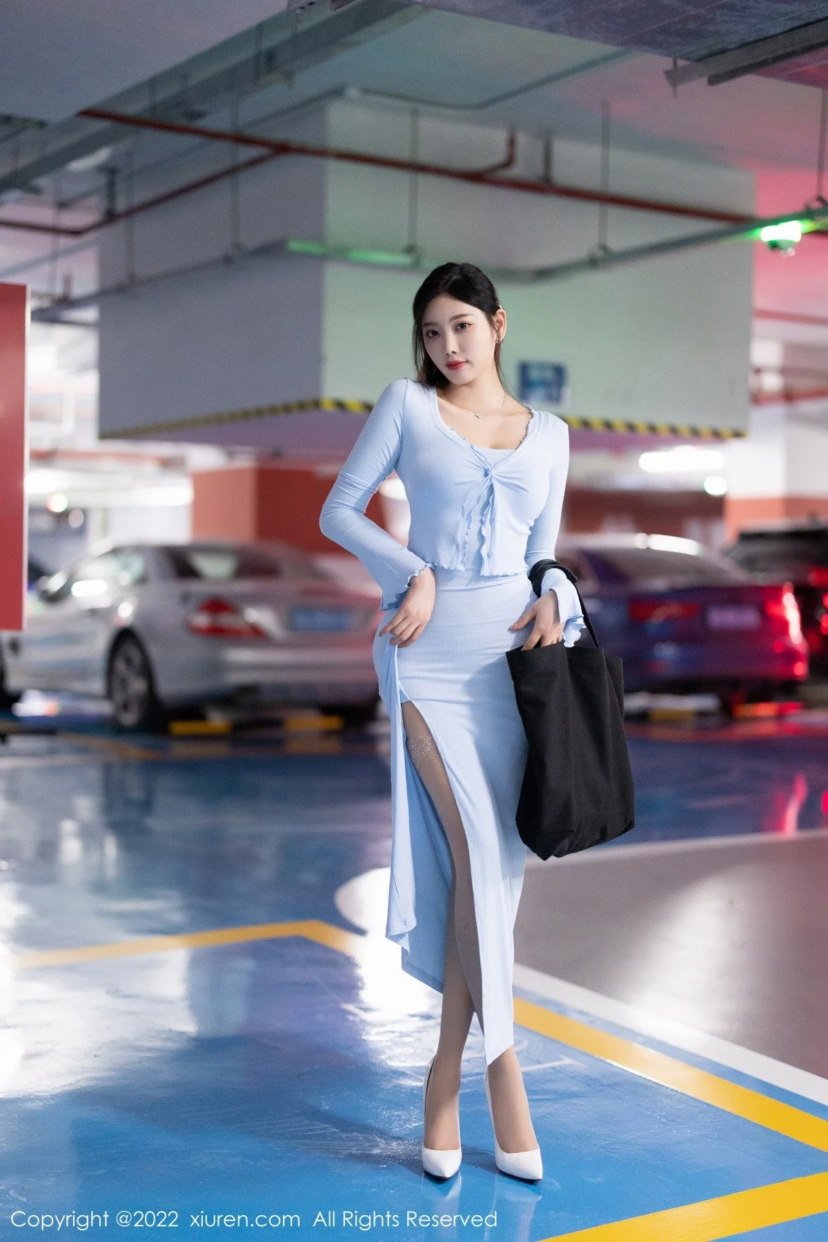 [XiuRen秀人网]No.5144 女神杨晨晨Yome都市丽人系列淡蓝长裙配蕾丝袜完美诱惑写真101P