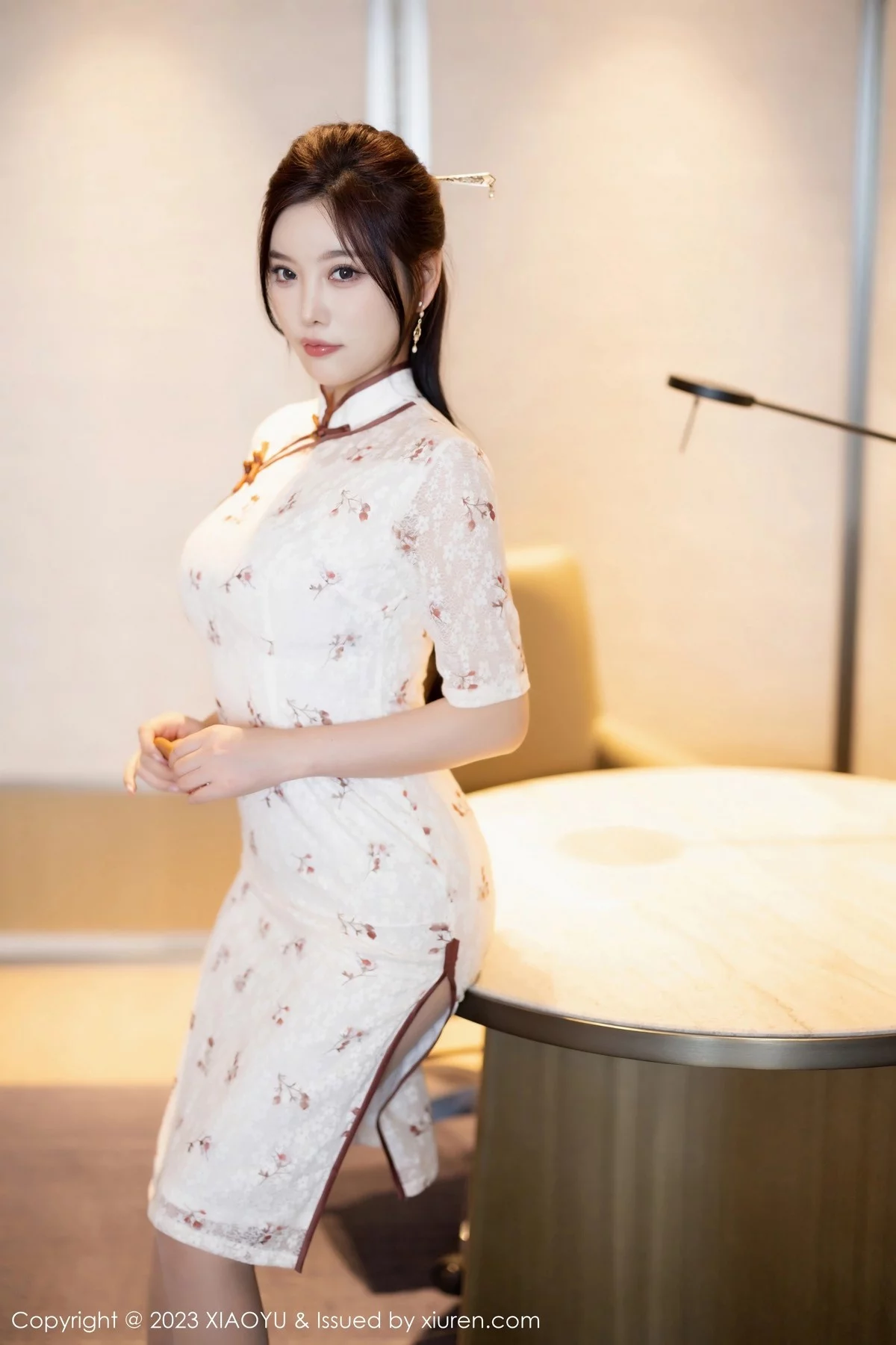 [XiaoYu画语界]Vol.1026 女神杨晨晨Yome性感白色旗袍露轻透内衣配超薄肉丝诱惑写真100P