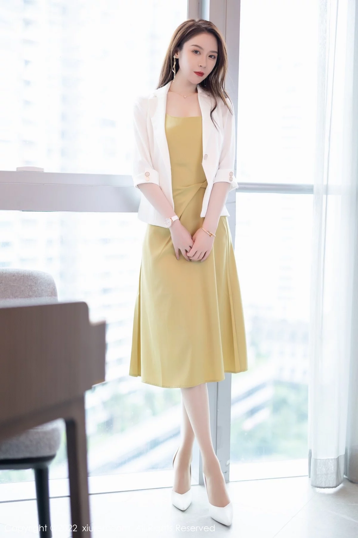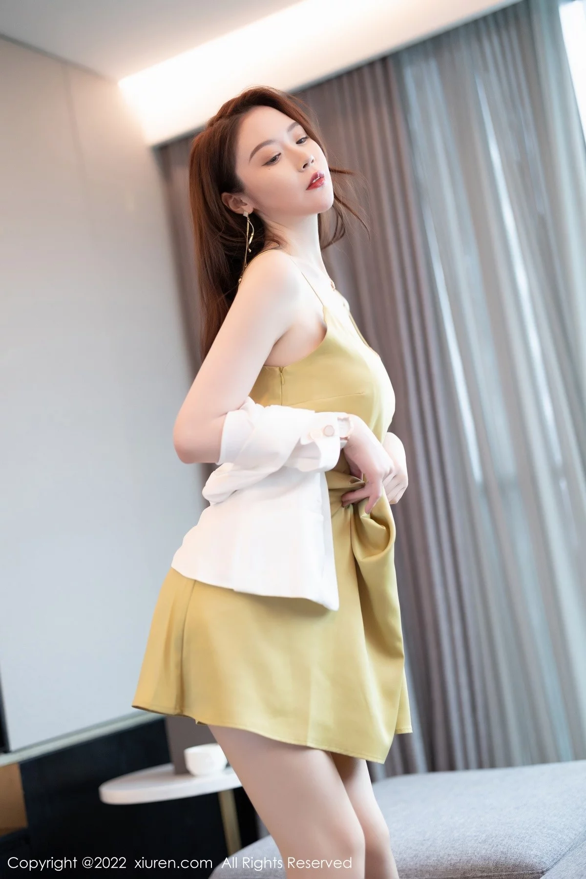 [XiuRen秀人网]No.5147 模特梦心玥佛山心愿旅拍脱吊带裙露黄色内衣超薄肉丝诱惑写真82P
