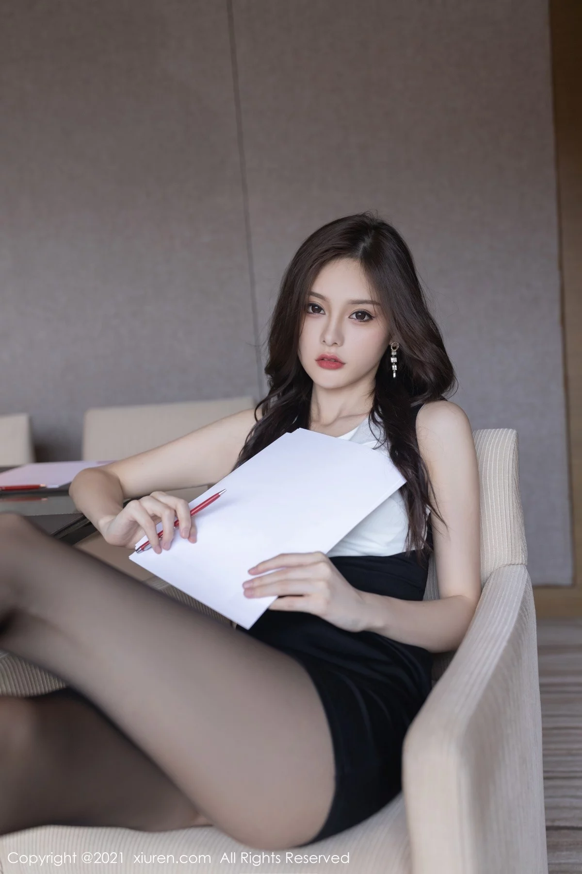 [XiuRen秀人网]No.3824 模特王心怡会议室主题脱连身裙露性感内衣超薄黑丝迷人诱惑写真88P