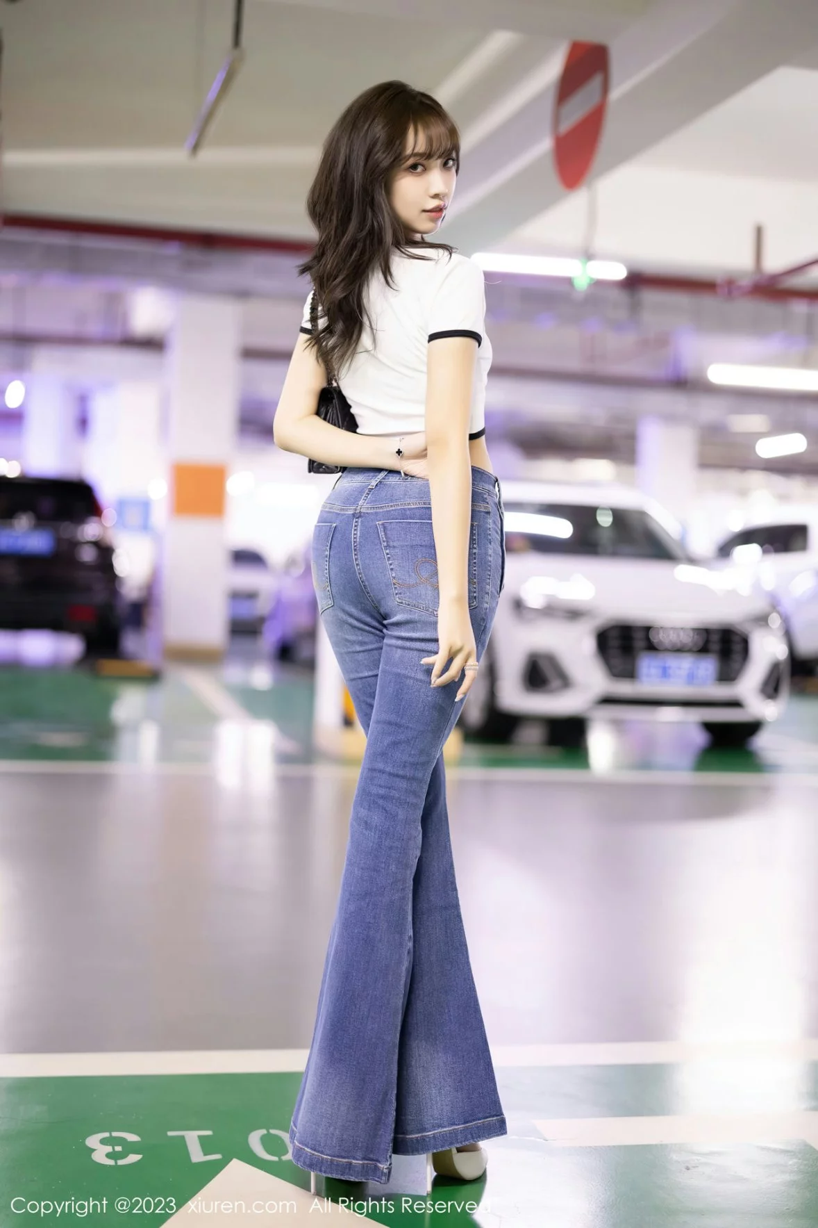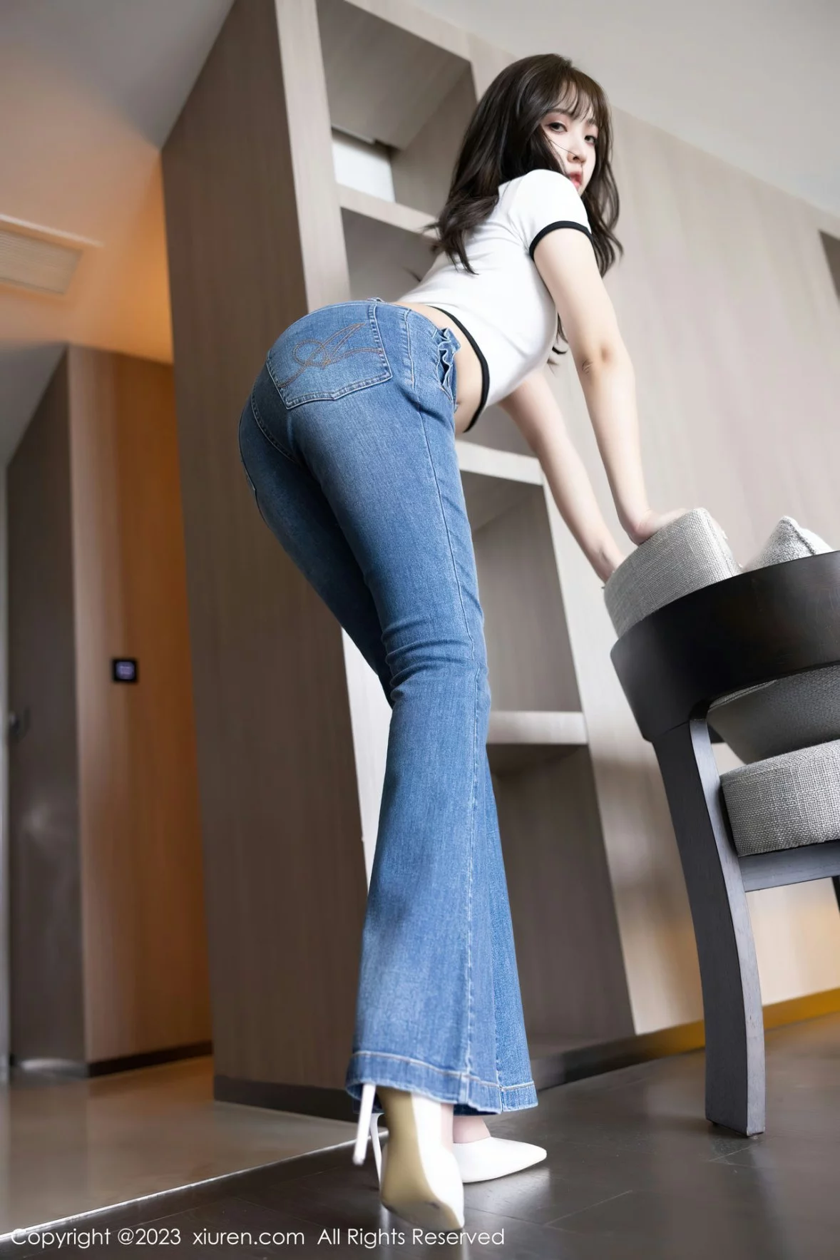 [XiuRen秀人网]No.6160 模特郑颖姗Bev白色上衣配牛仔长裤露蕾丝内衣超薄肉丝诱惑写真90P