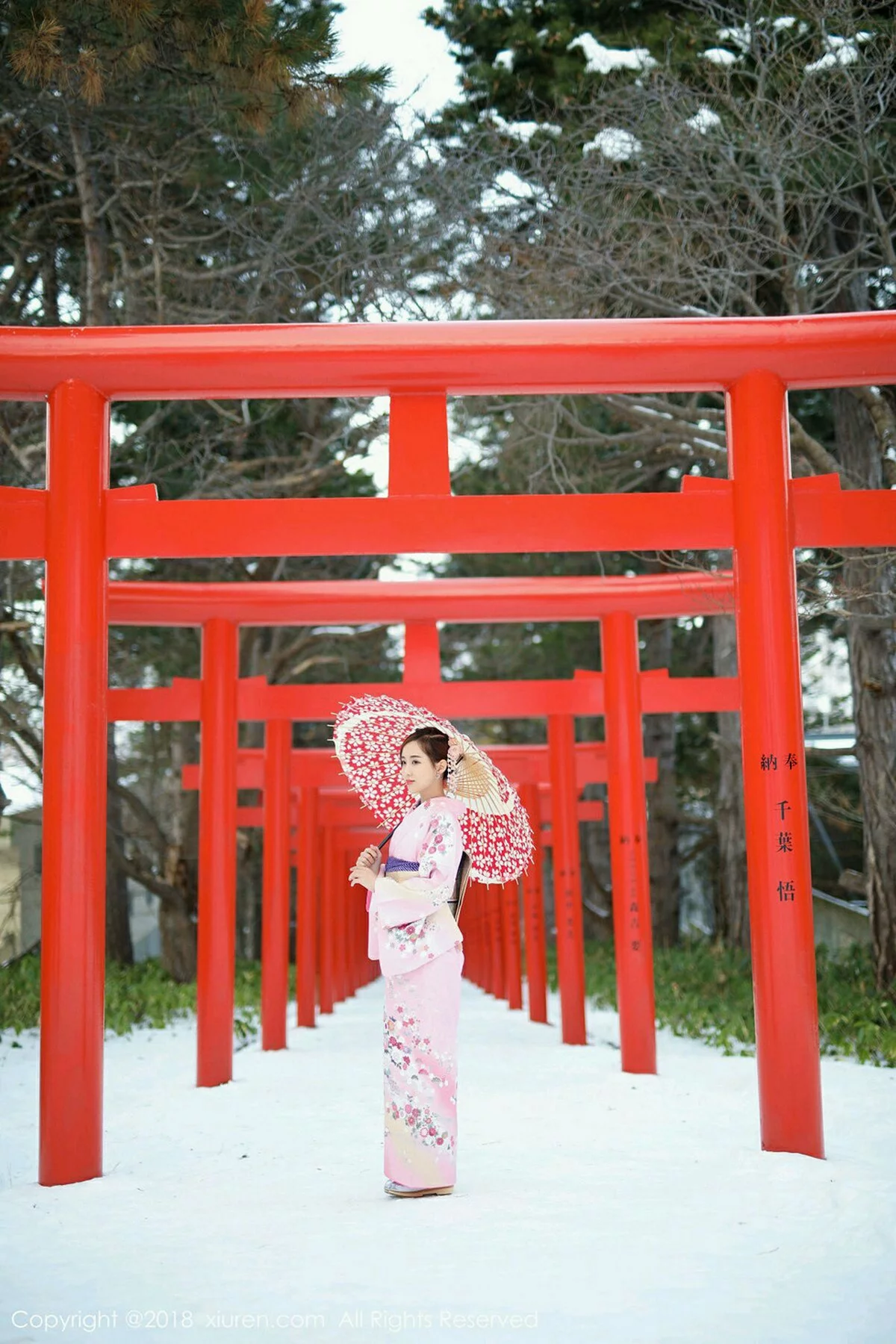 [XiuRen秀人网]No.1228 美女猫宝北海道旅拍粉色和服+粉色比基尼惹火诱惑写真49P