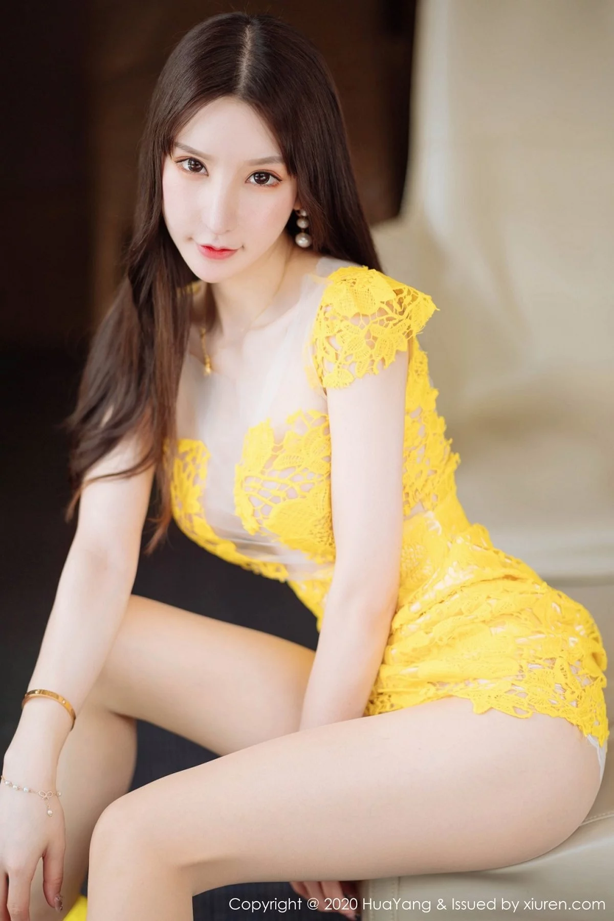 [HuaYang花漾]Vol.253 女神周于希Sandy三亚旅拍黄色镂空短裙秀火辣身材诱惑写真61P