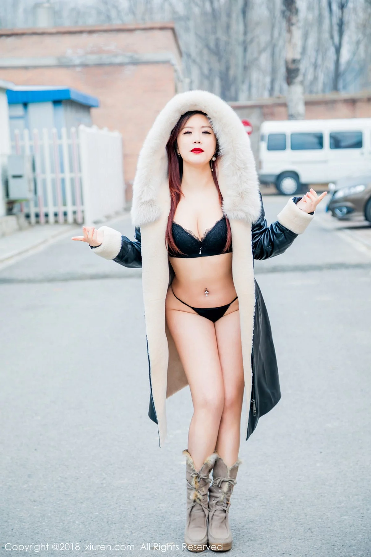 [XiuRen秀人网]No.953 嫩模西希白兔户外红色内衣半脱内裤秀白嫩翘臀屁沟诱惑写真66P