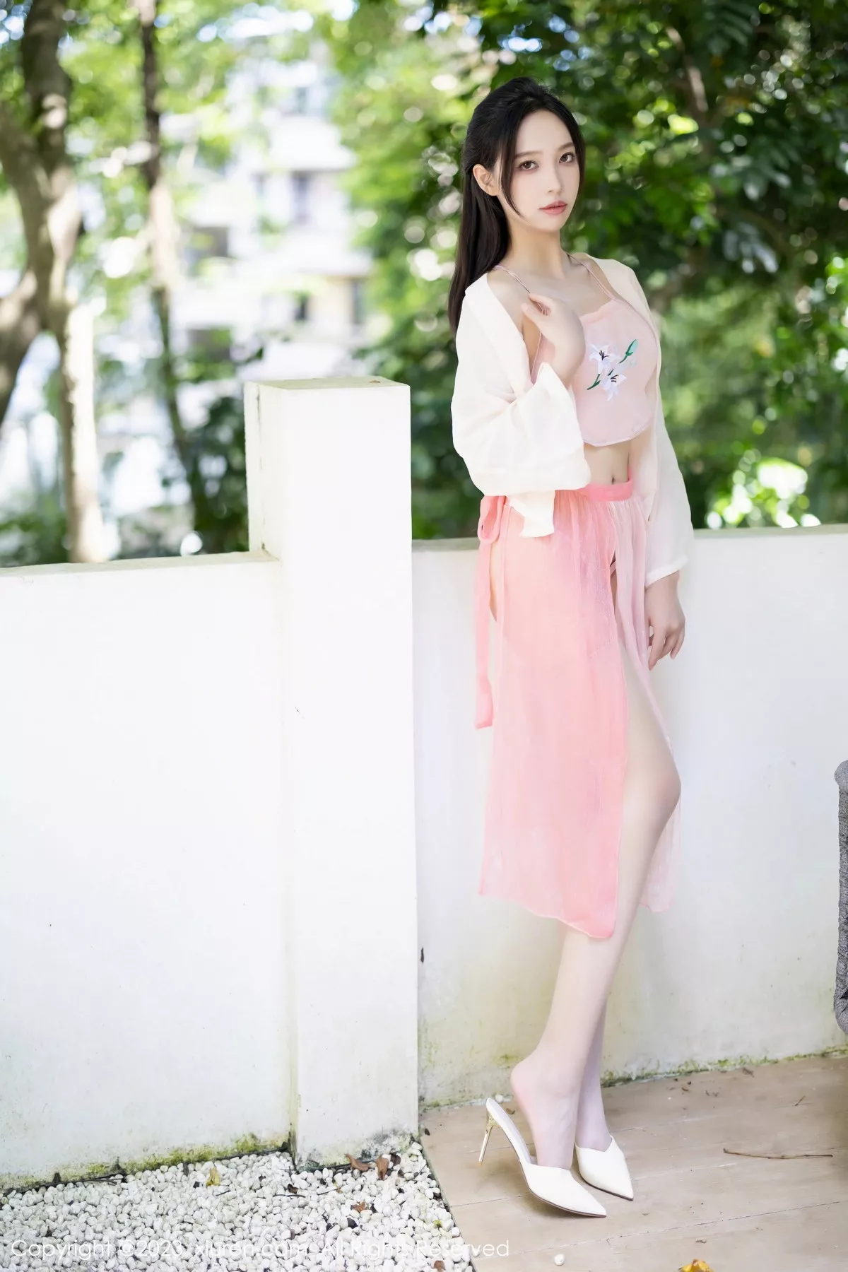[XiuRen秀人网]No.7139 模特郑颖姗Bev性感白色连衣长裙配原色丝袜秀苗条身姿诱惑写真83P