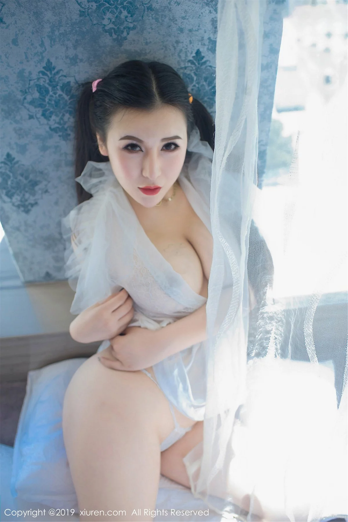 [XiuRen秀人网]No.1588 嫩模伊诺私房白色情趣薄纱透视秀傲人豪乳惹火诱惑写真47P