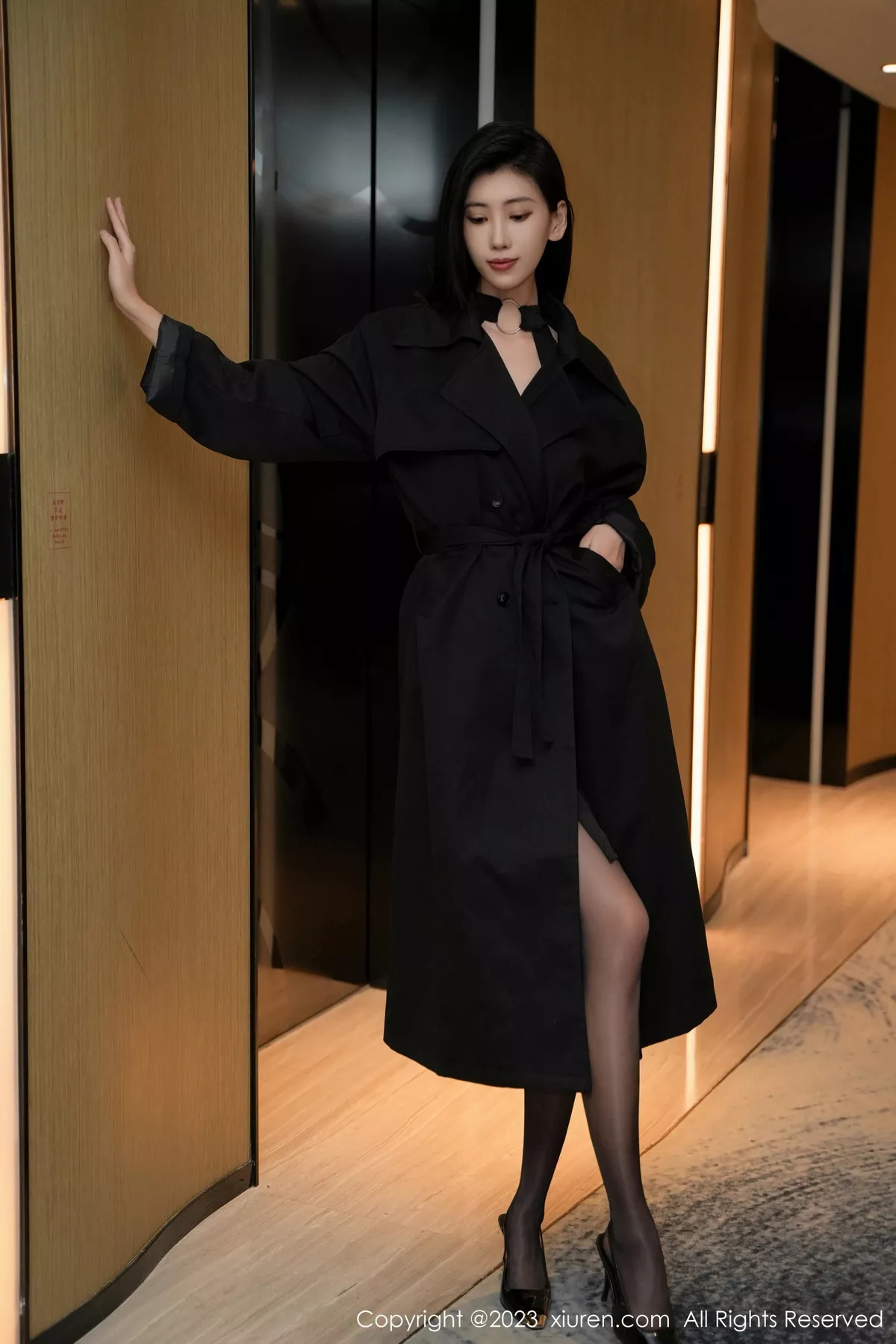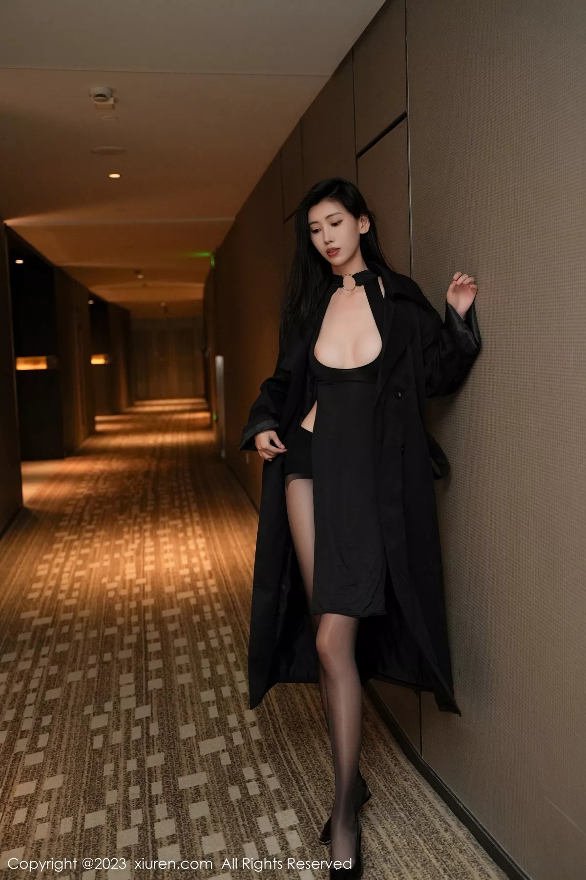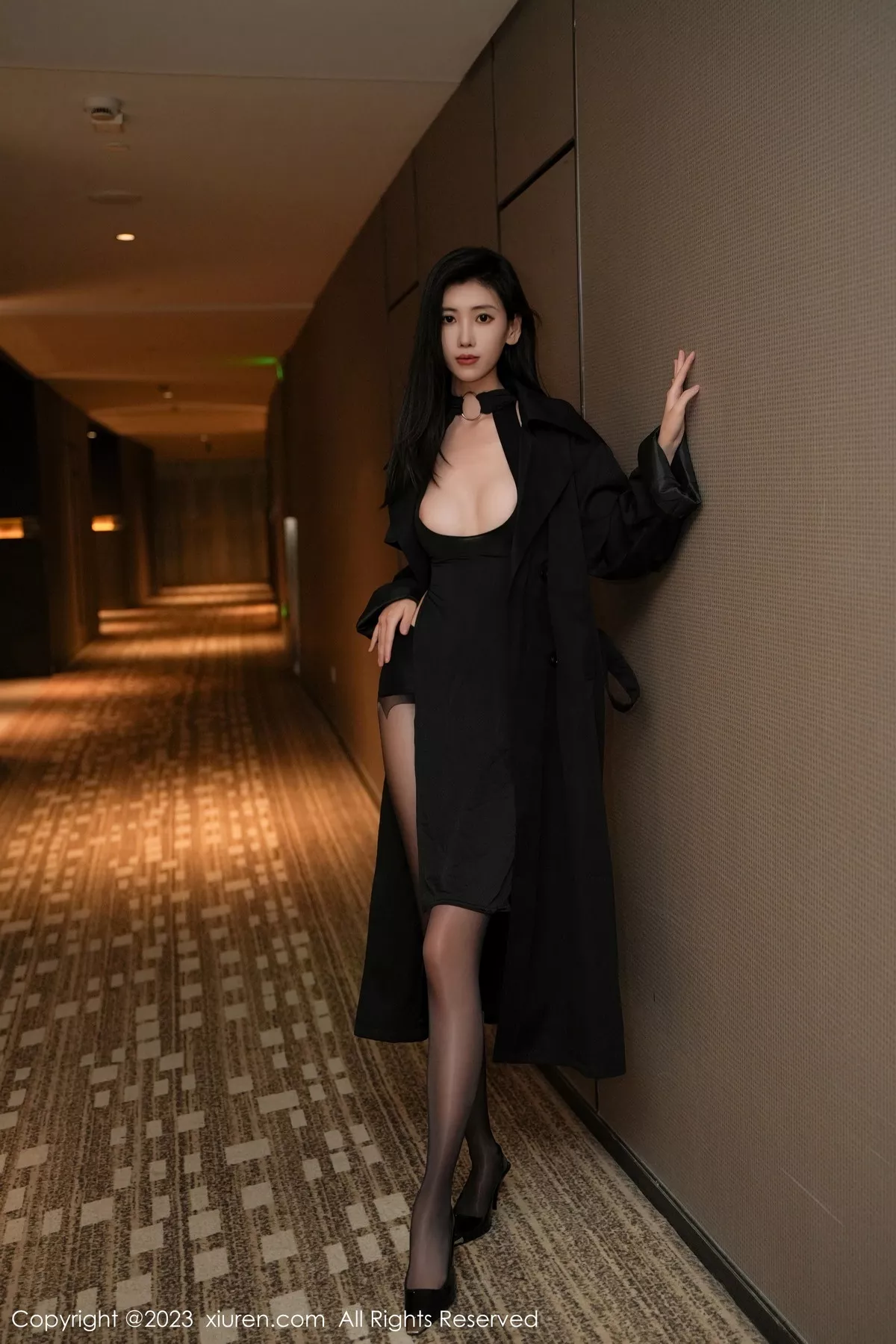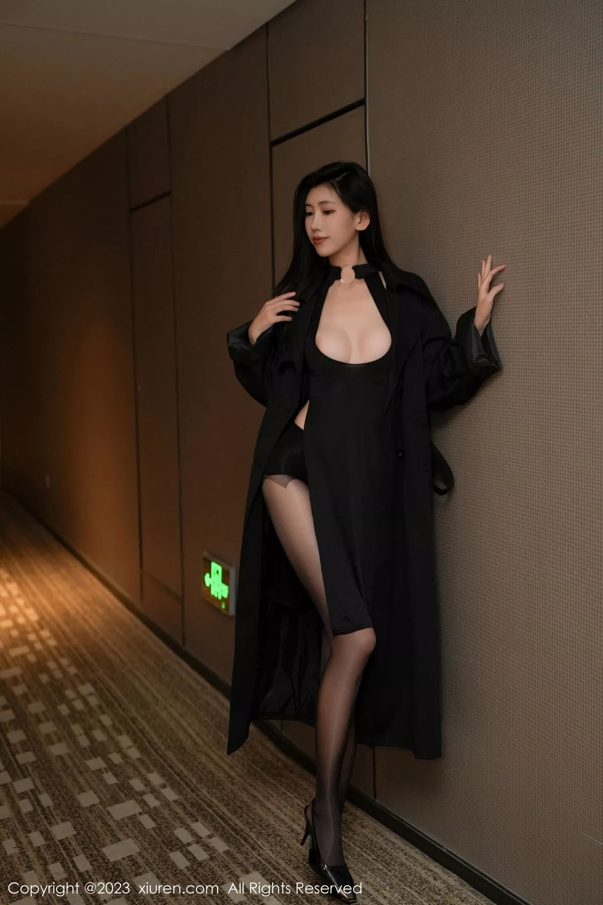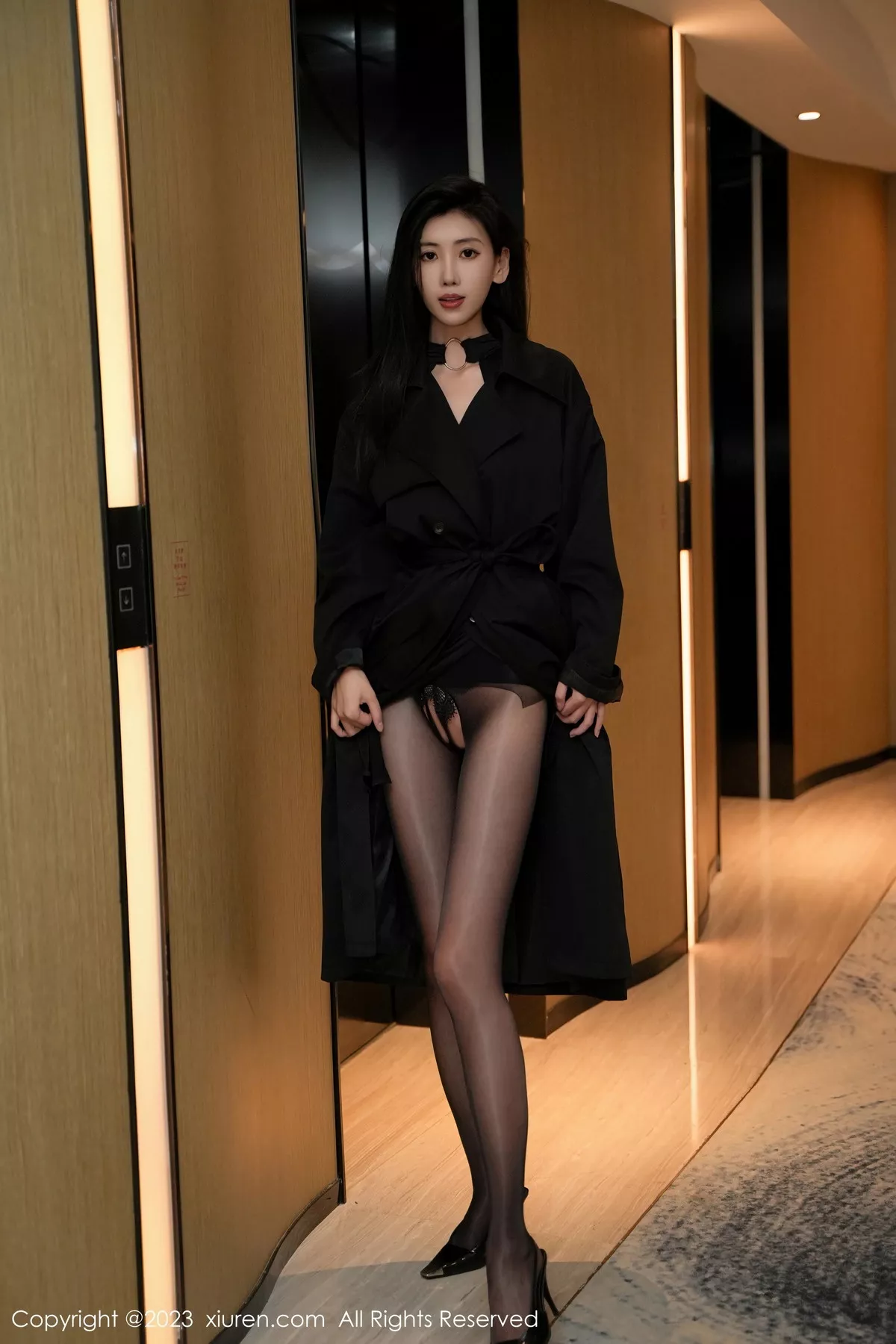 [XiuRen秀人网]No.7701 模特章芃芃性感黑色服饰配闪亮开档黑丝秀翘臀美腿迷人诱惑写真81P