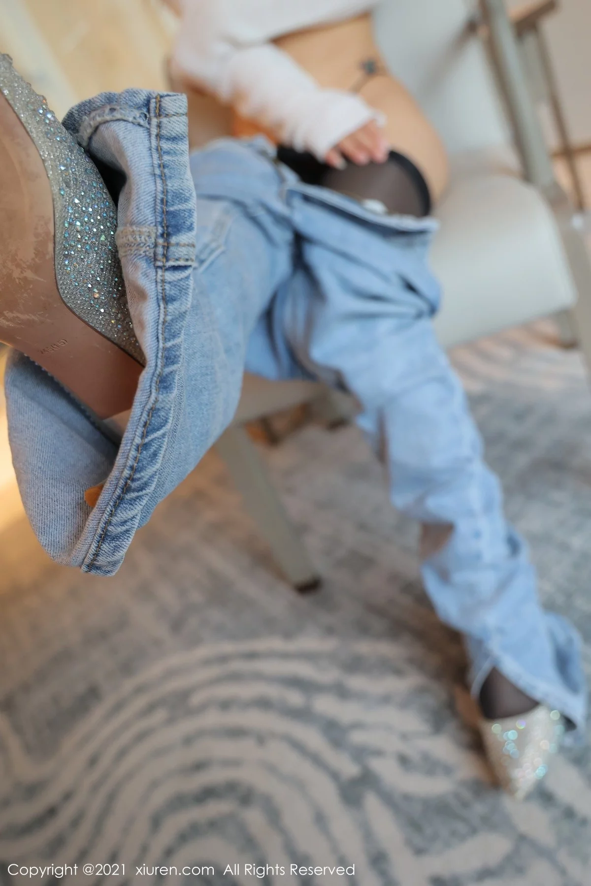 [XiuRen秀人网]No.3695 模特星萌洁白动人毛衣配开档黑丝裤袜半撩秀惹火身材诱惑写真60P