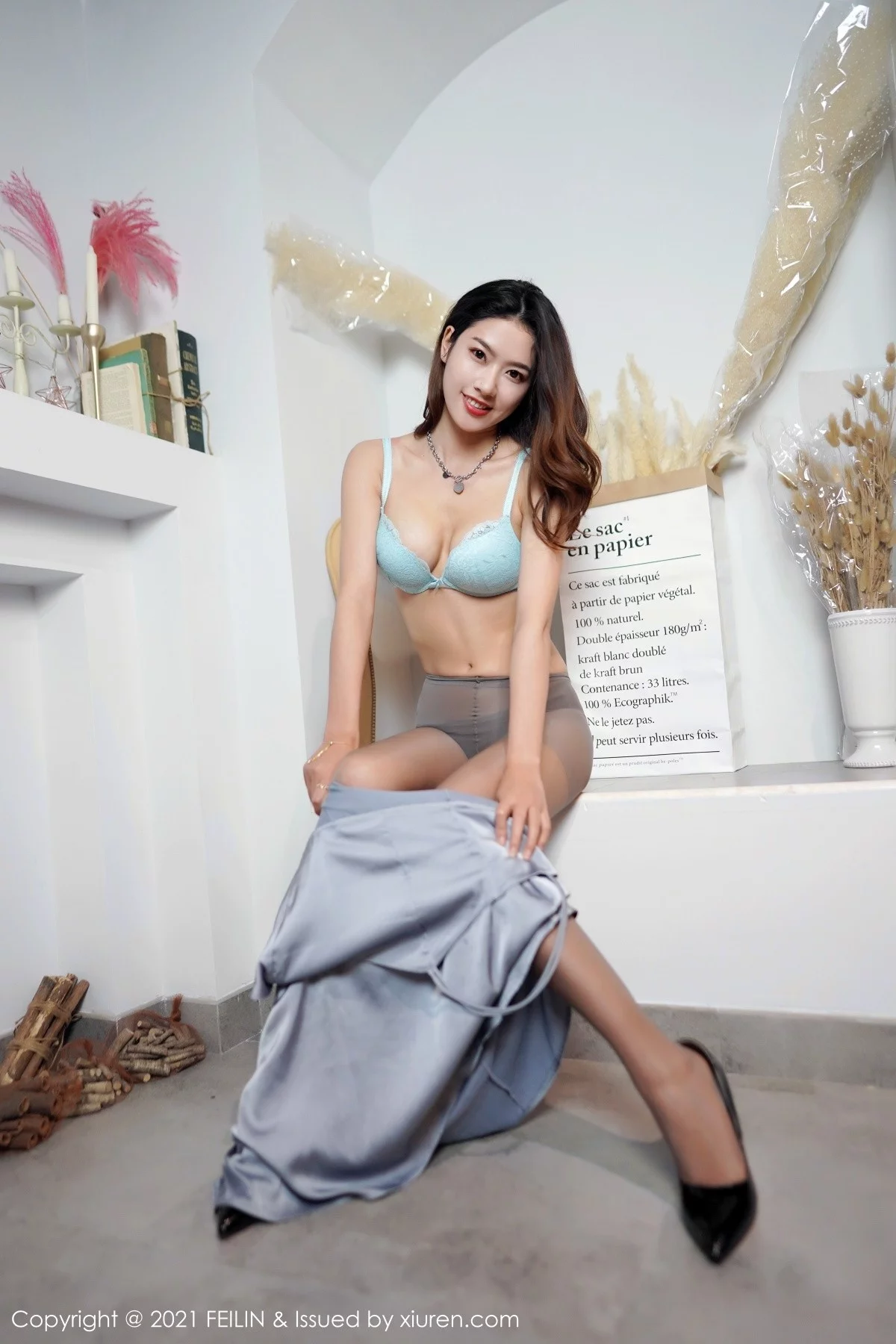 [FeiLin嗲囡囡]VOL.387 新人模特尤尤子私房性感内衣配黑丝网袜秀美腿诱惑写真41P