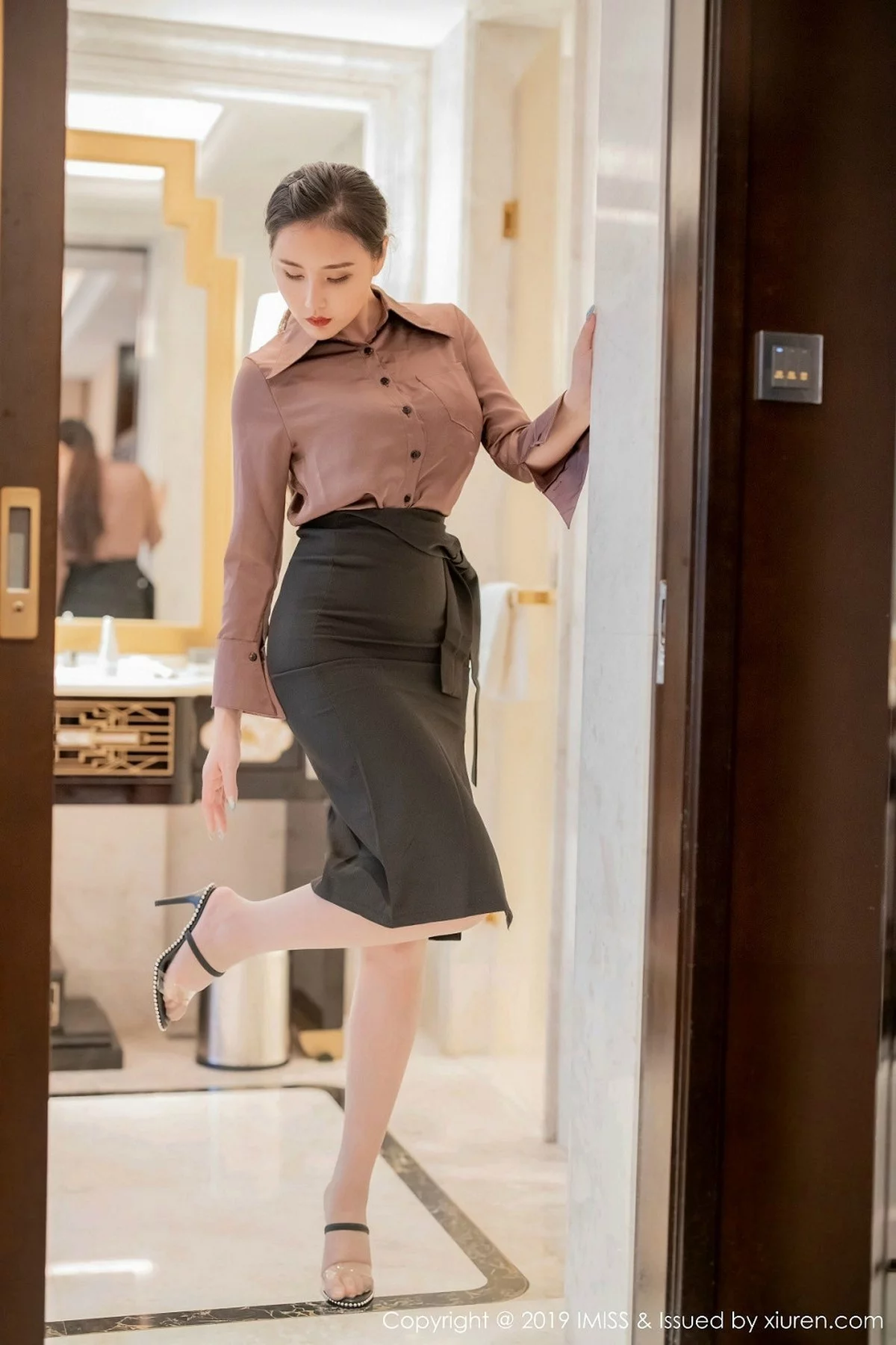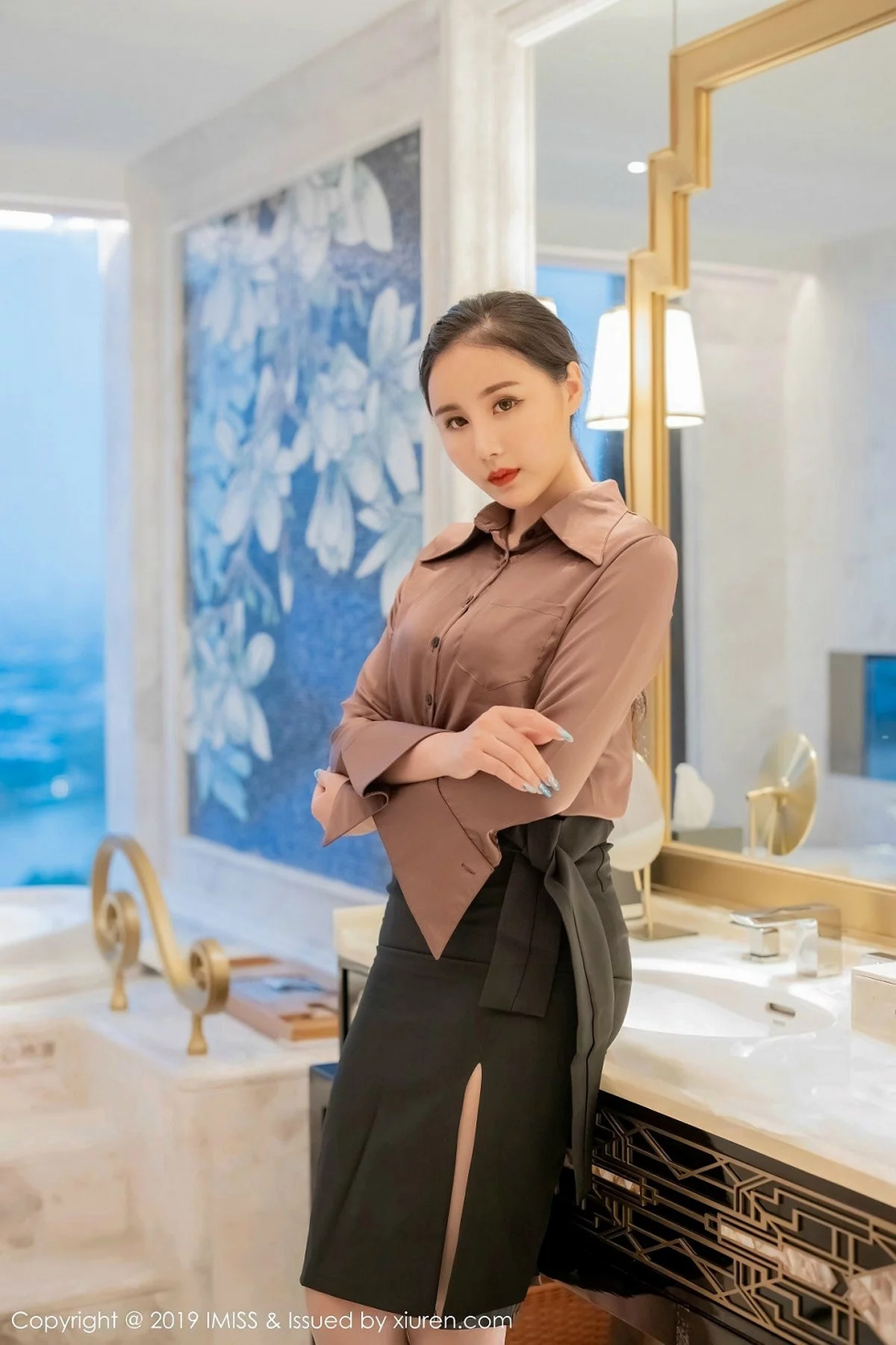 [IMISS爱蜜社]Vol.381 女神许诺Sabrina私房衬衣配白短裙半脱秀完美身材诱惑写真46P