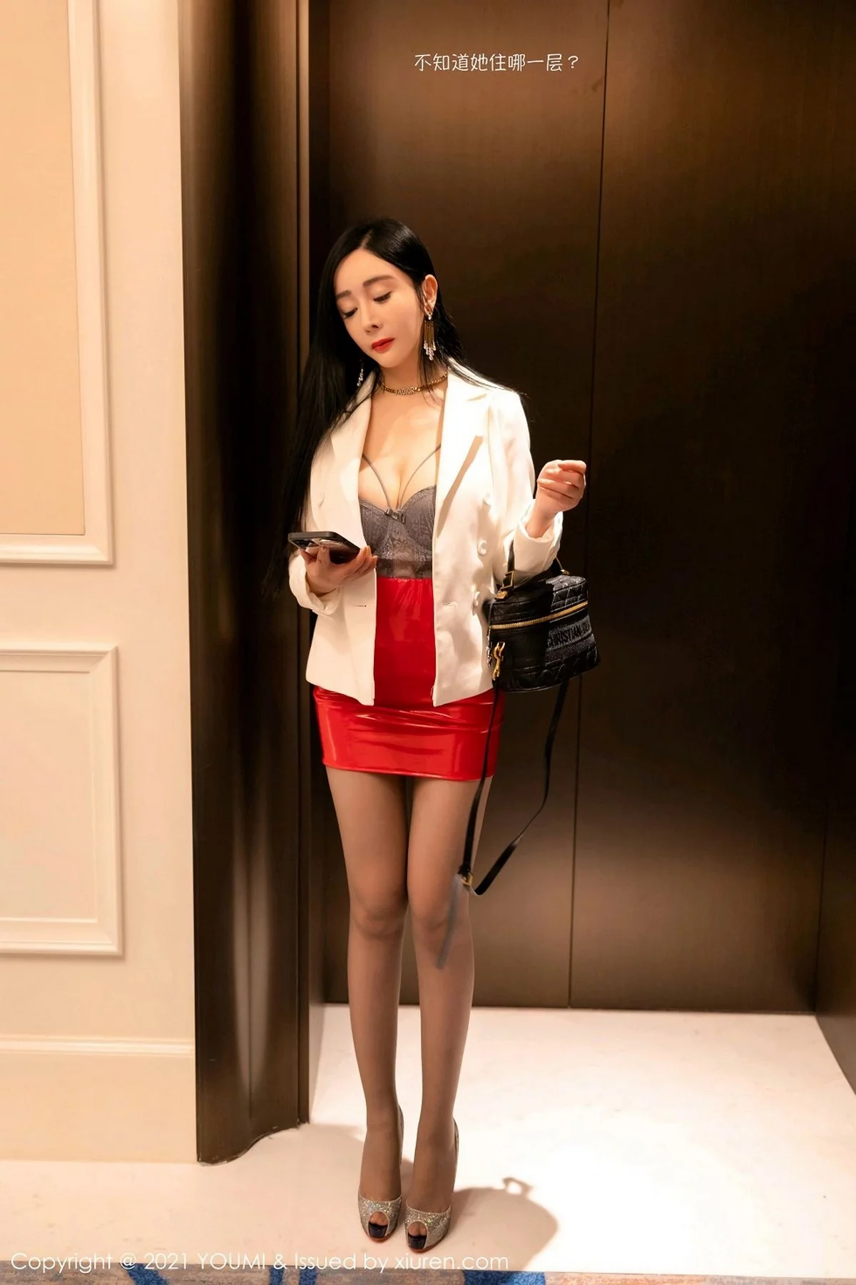 [YouMi尤蜜荟]Vol.588 女神王雨纯典雅酒红色礼裙半撩露肉丝裤袜秀翘臀美腿诱惑写真49P