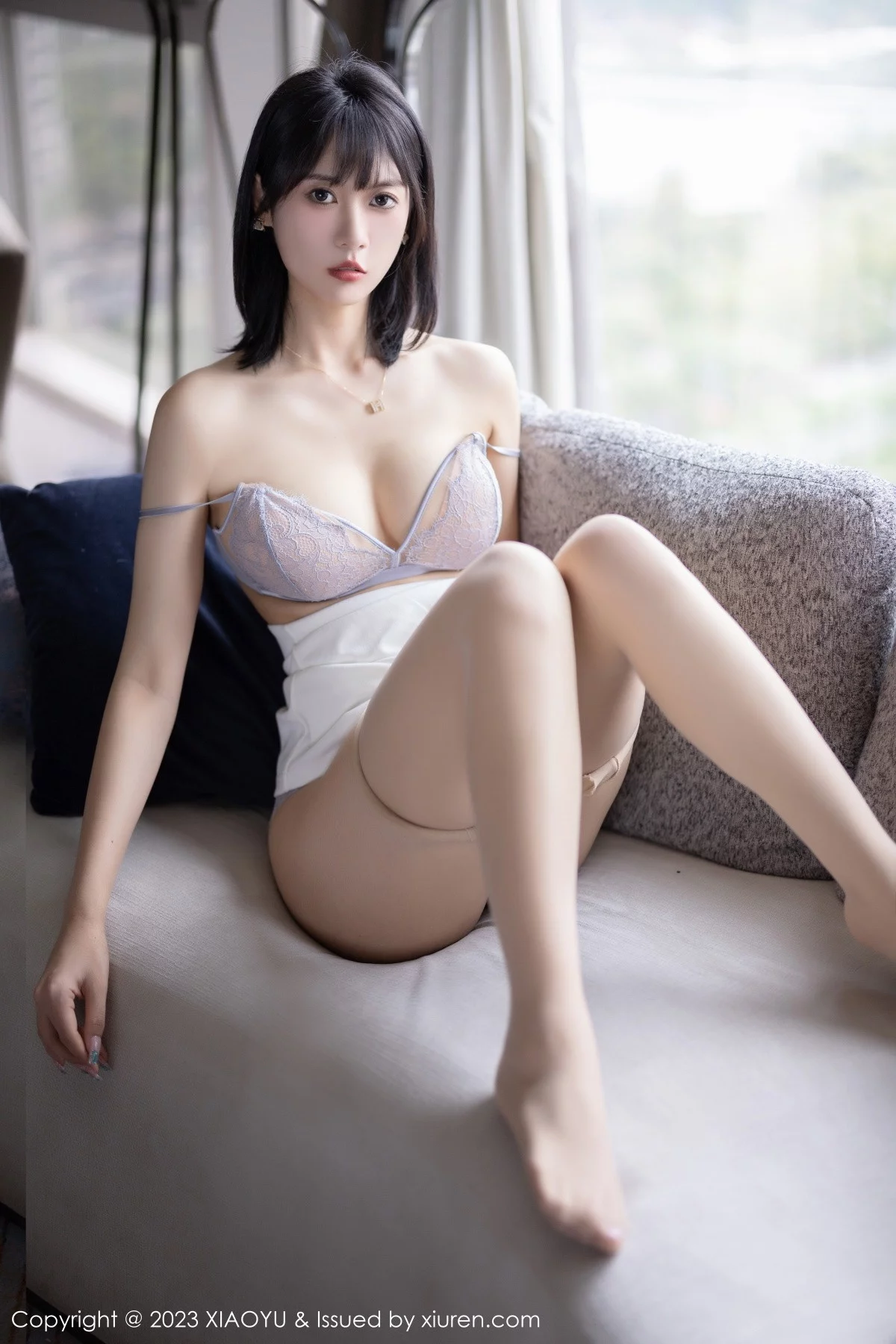[XiaoYu画语界]Vol.954 模特林子遥粉色收身上衣配白短裙露灰色蕾丝内衣迷人诱惑写真72P