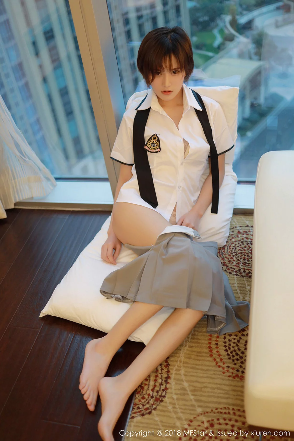 [MFStar模范学院]Vol.172 嫩模小姿2002私房学生制服半脱白衬衣露性感美胸写真51P