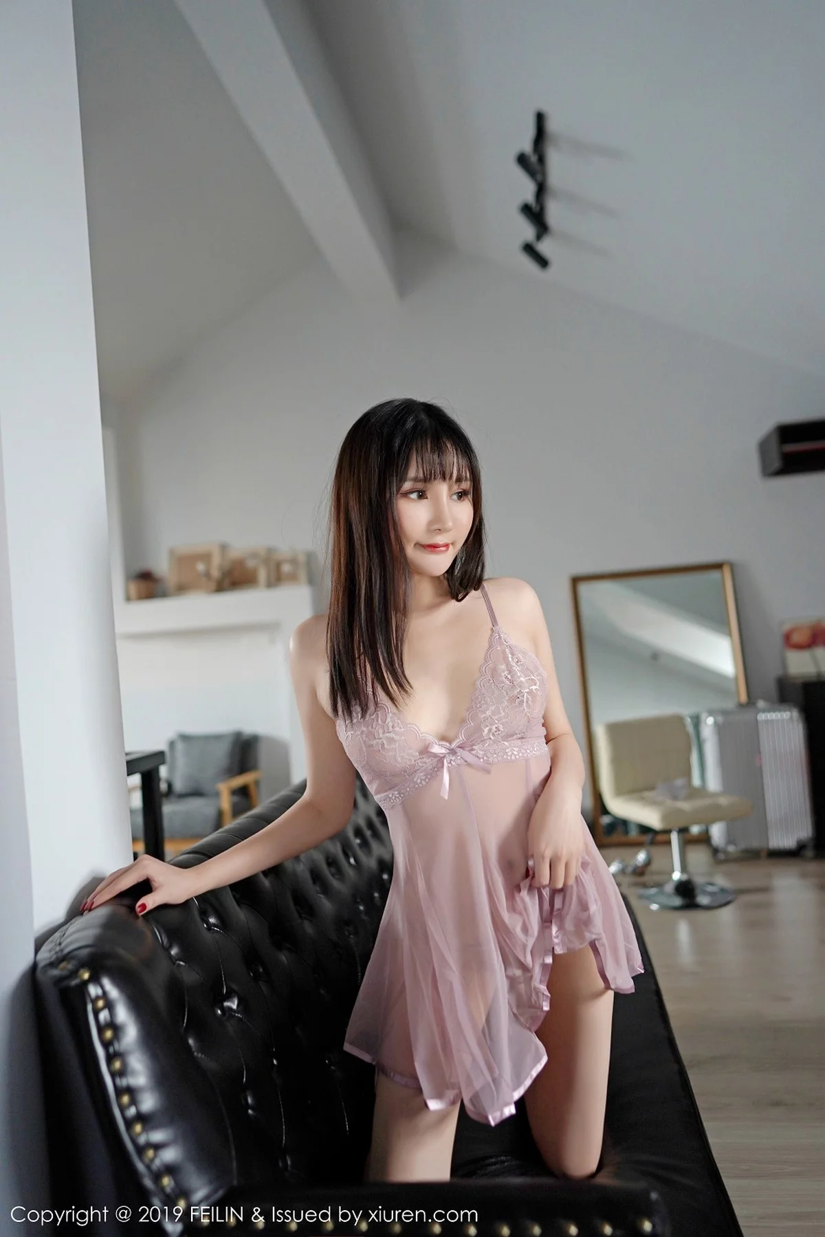 [FeiLin嗲囡囡]Vol.202 新人嫩模青妍Celina居家私房透视薄纱内衣撩人诱惑写真54P
