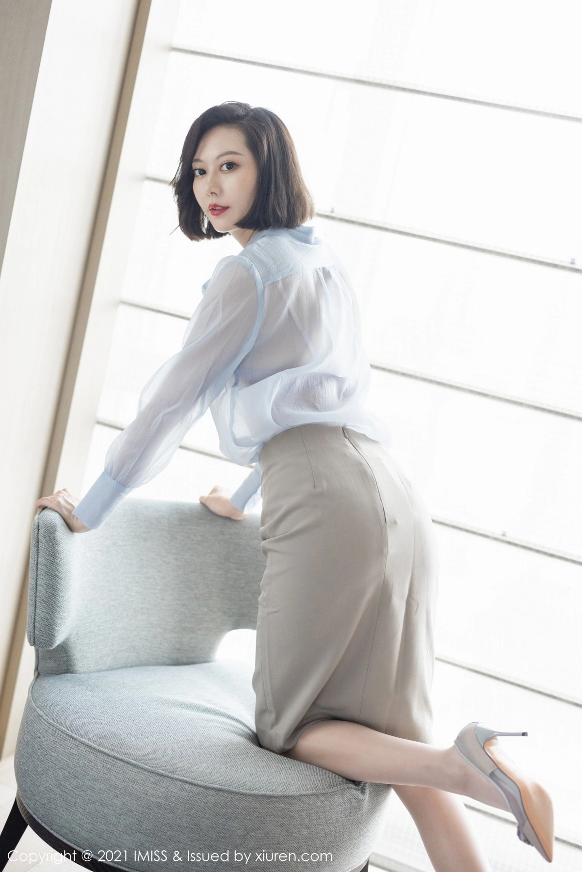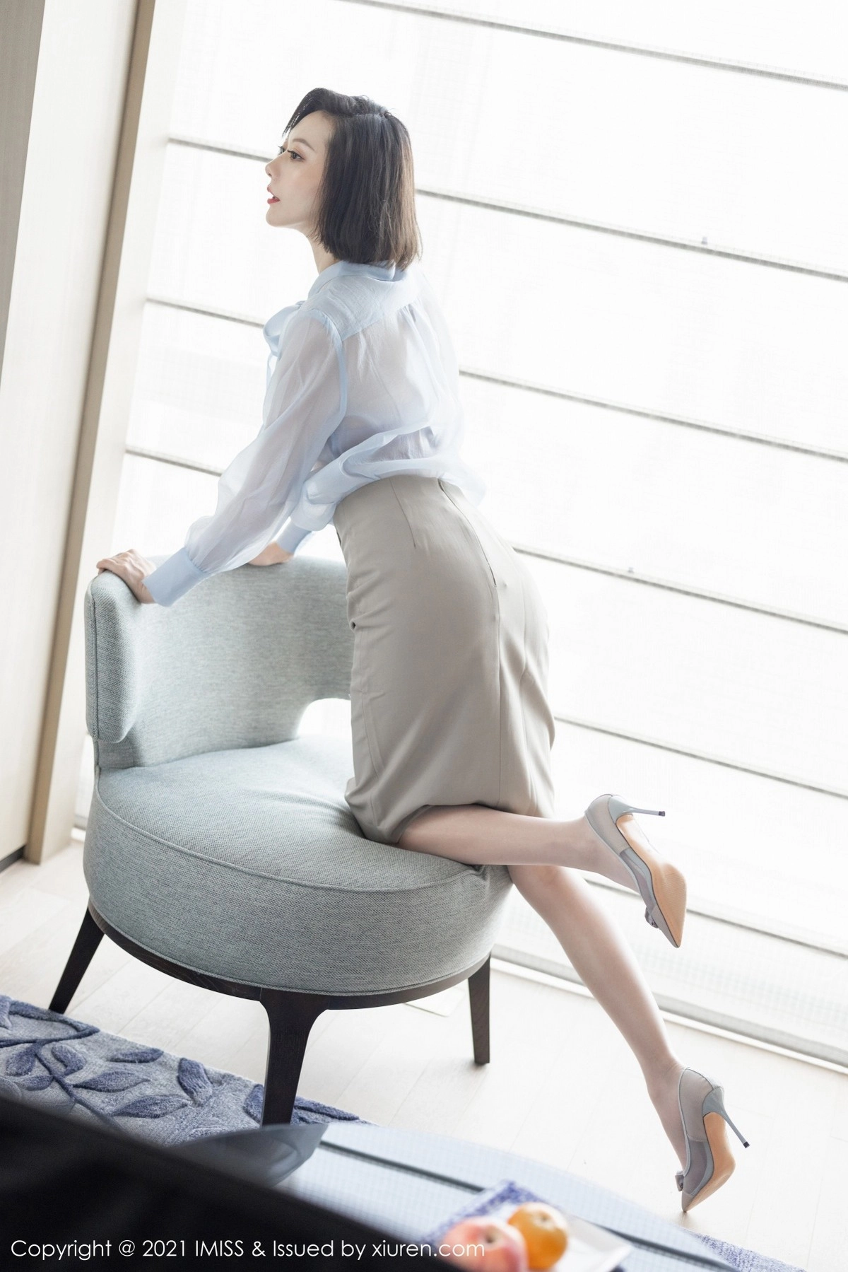 [IMISS爱蜜社]Vol.605 气质美女艺轩私房暖色调主题薄透衬衣配肉丝裤袜诱惑写真84P