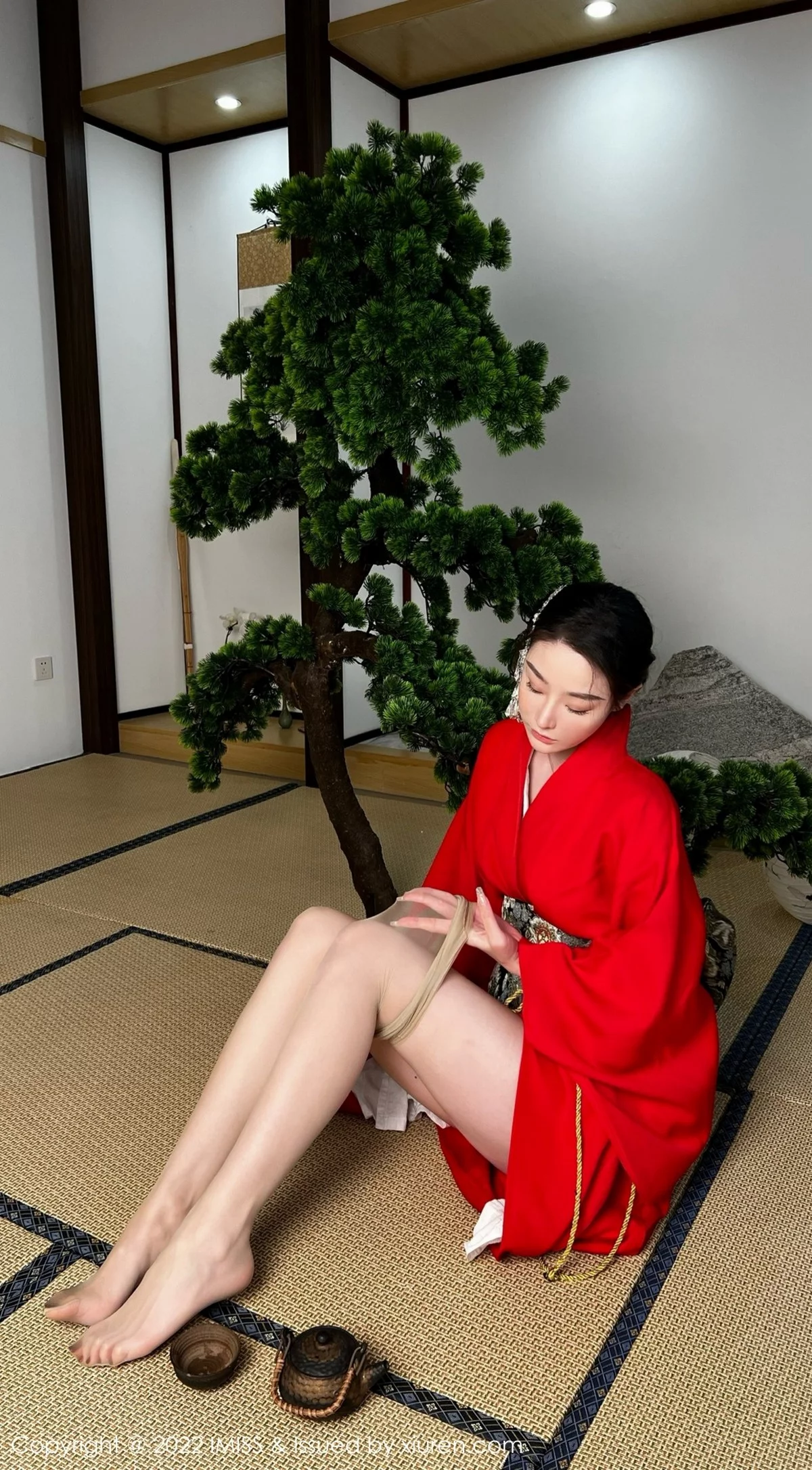 [IMISS爱蜜社]Vol.669 模特逗逗doudou性感红色和服配诱人原色丝袜秀美腿撩人诱惑写真30P