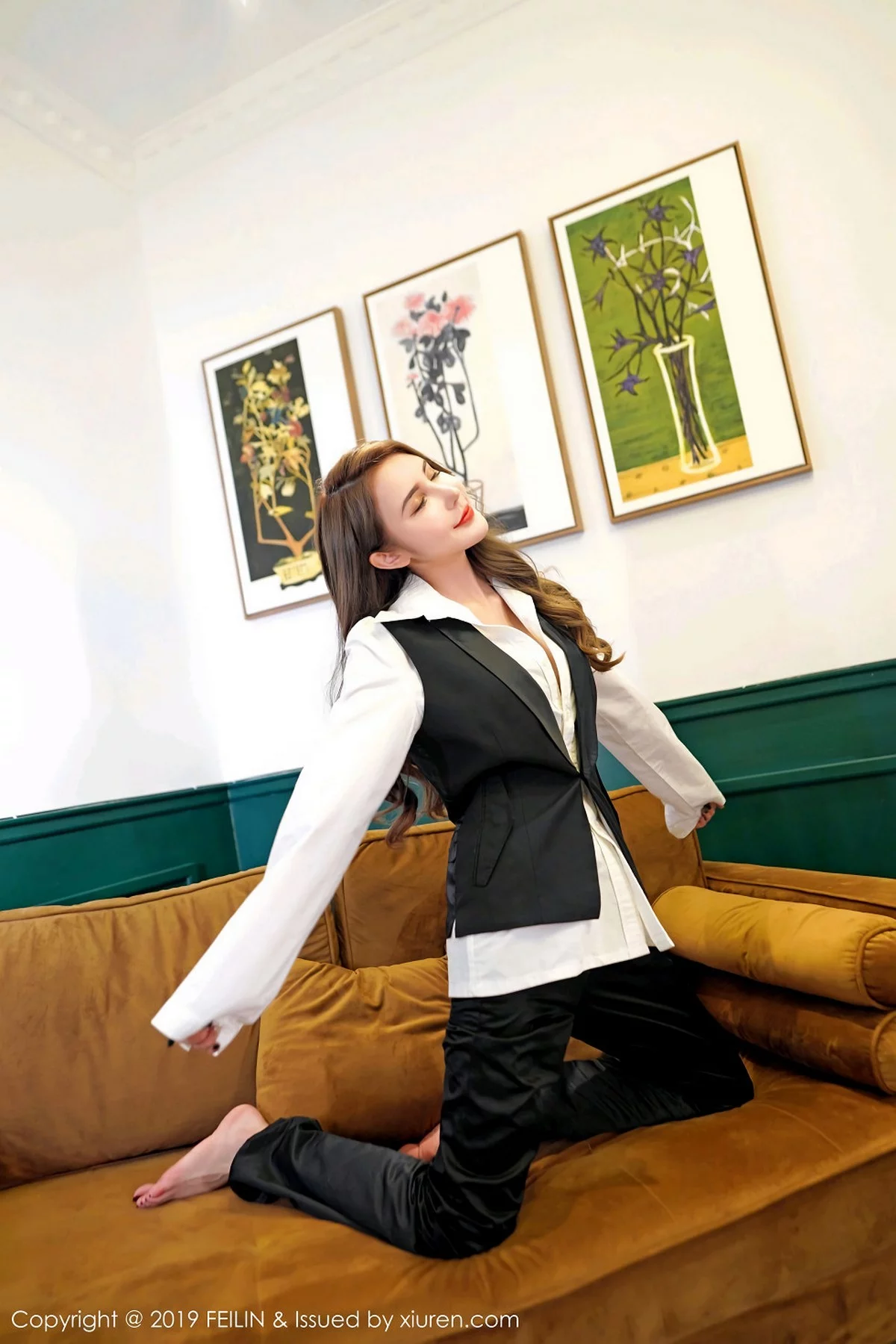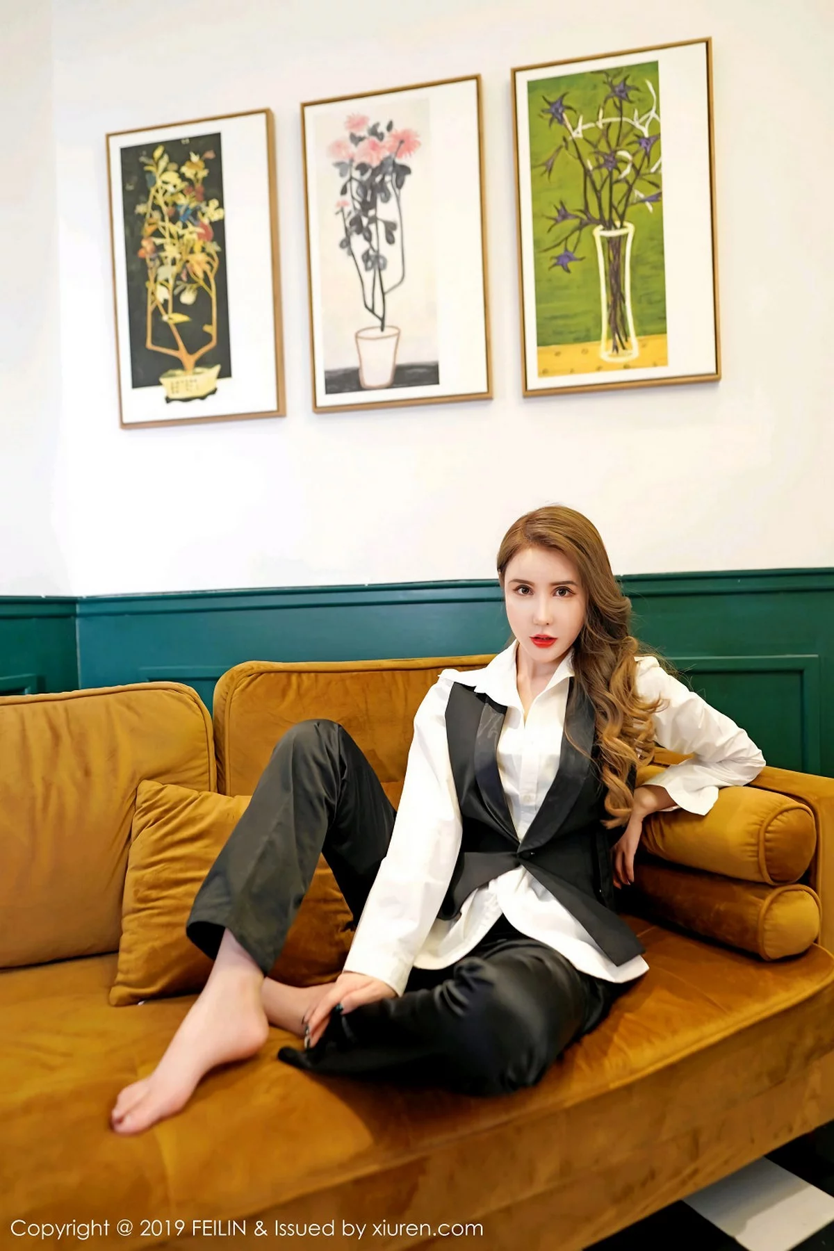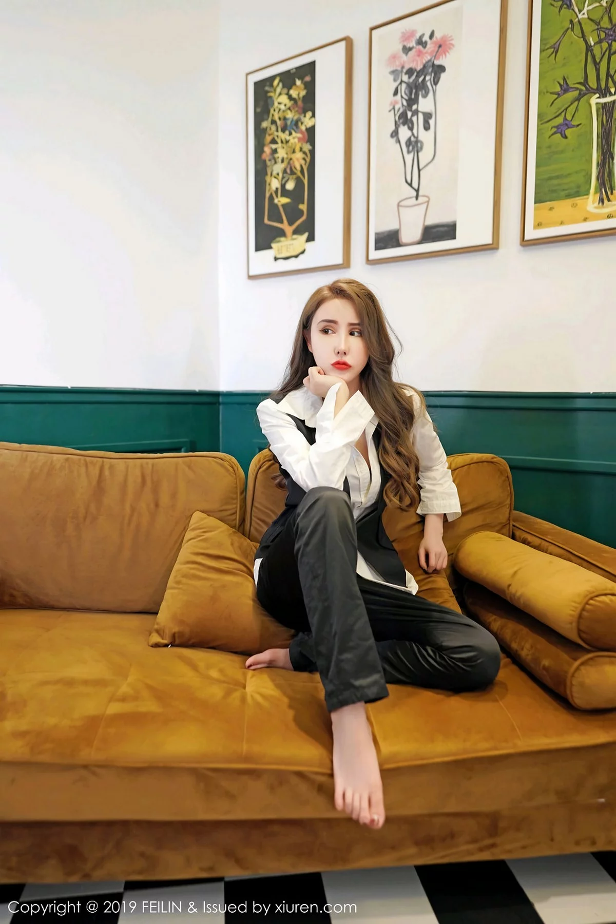 [FeiLin嗲囡囡]Vol.200 嫩模伍月may私房红色连身裙+白衬衣制服秀苗条身材性感写真50P