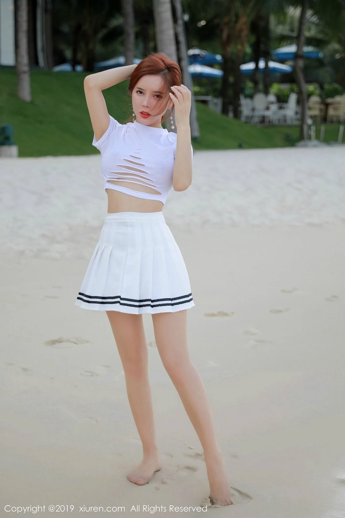 [XiuRen秀人网]No.1728 嫩模艾小青户外海边兔女郎超薄无内肉丝裤袜撩人诱惑写真38P