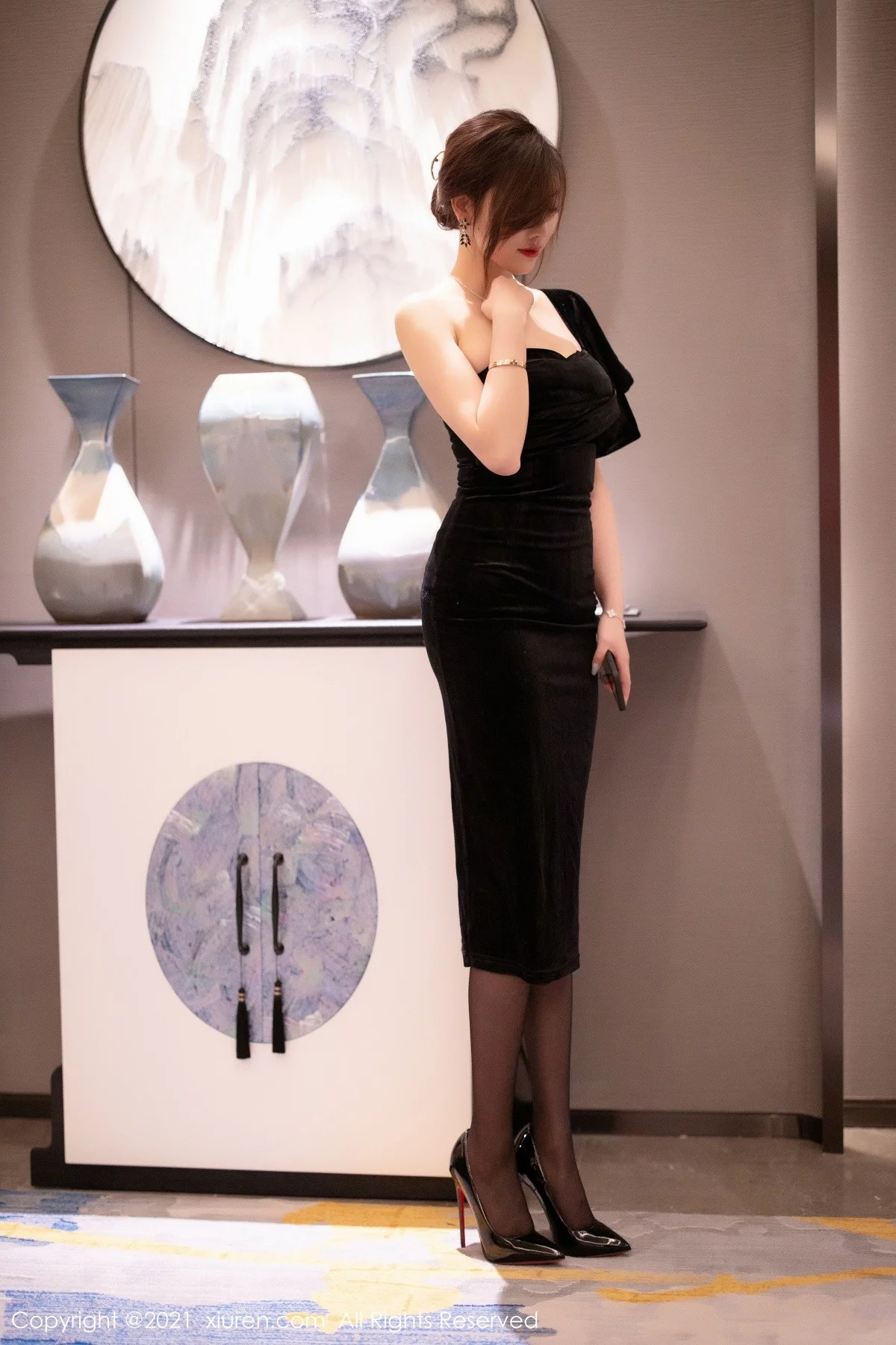 [XiuRen秀人网]No.3184 女神杨晨晨sugar高贵典雅黑色礼裙配黑丝裤袜秀完美身材诱惑写真70P
