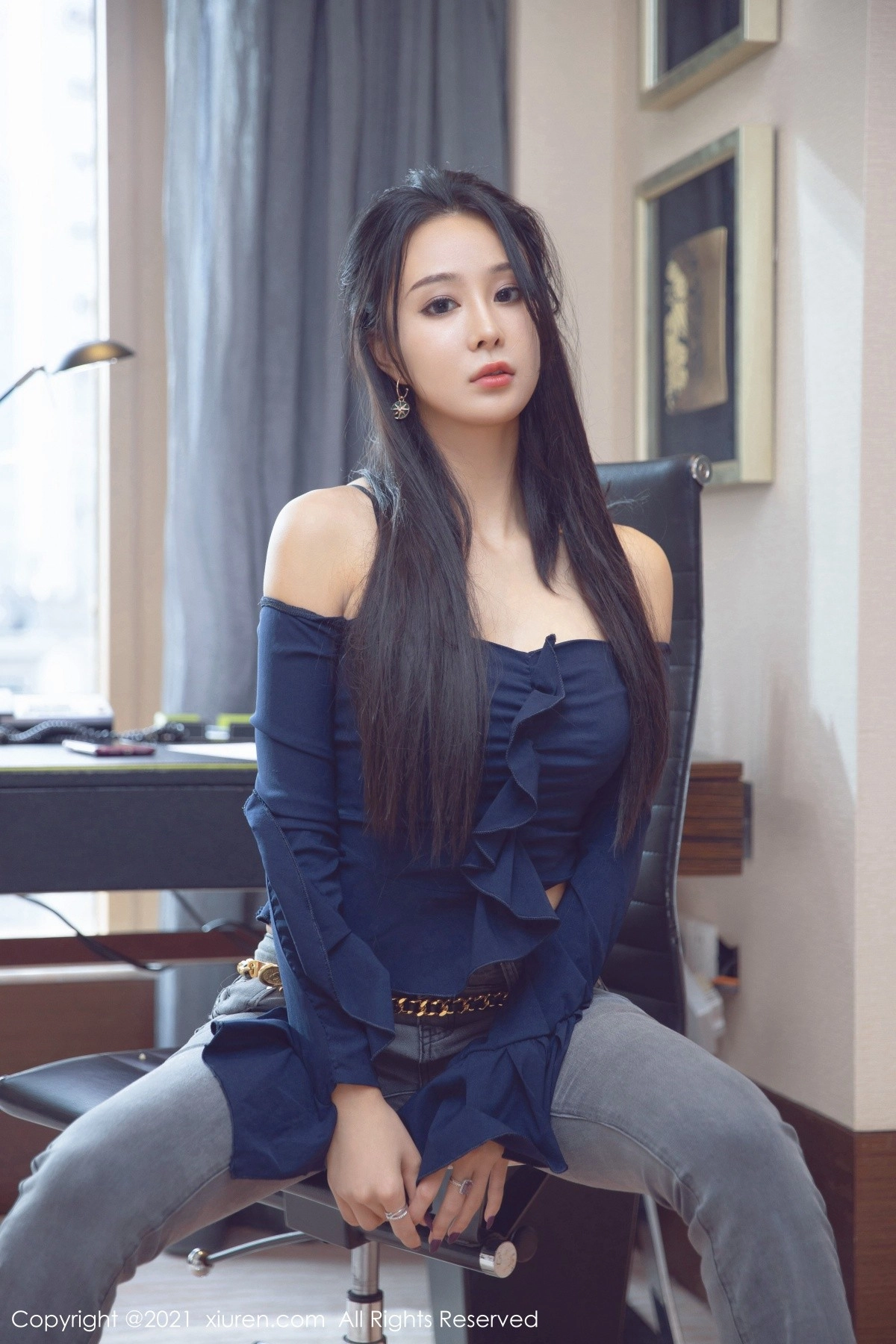 [YouMi尤蜜荟]Vol.663 模特蓝夏Akasha脱牛仔裤露缕空内裤蕾丝吊袜秀翘臀诱惑写真58P