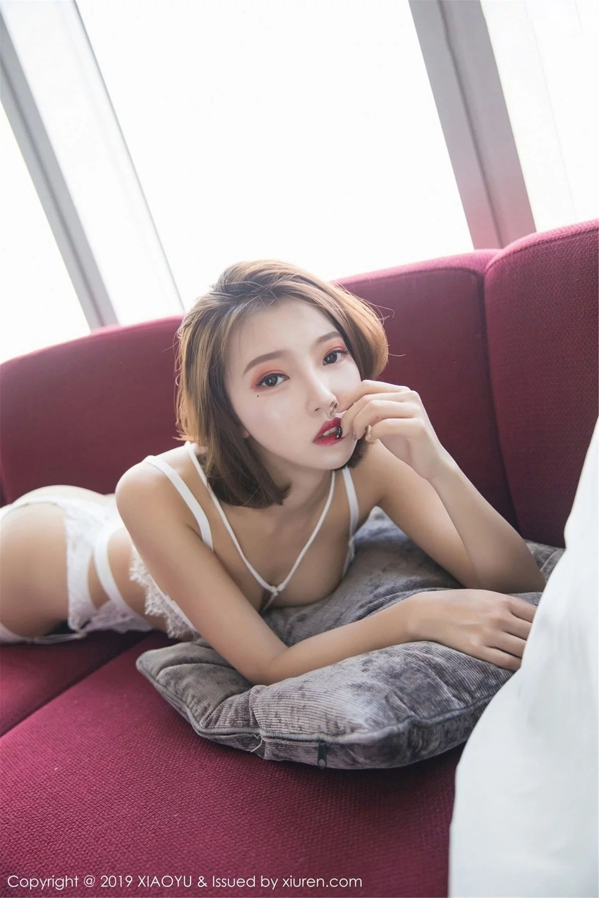 [XiaoYu画语界]Vol.052 女神Angela喜欢猫性感白色缕空内衣配肉丝袜撩人诱惑写真50P