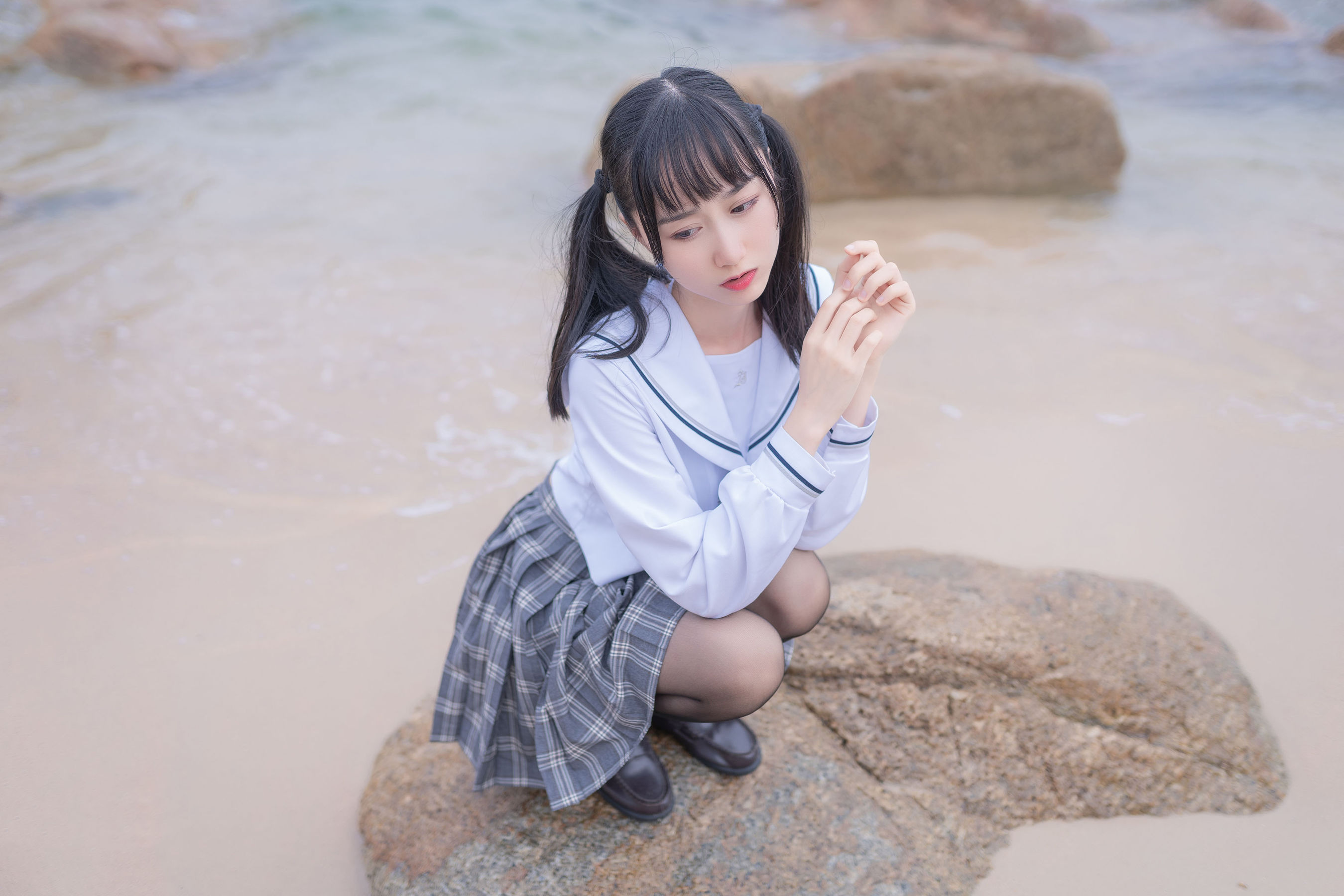 [COS福利] 萌系小姐姐木绵绵OwO – 海边JK