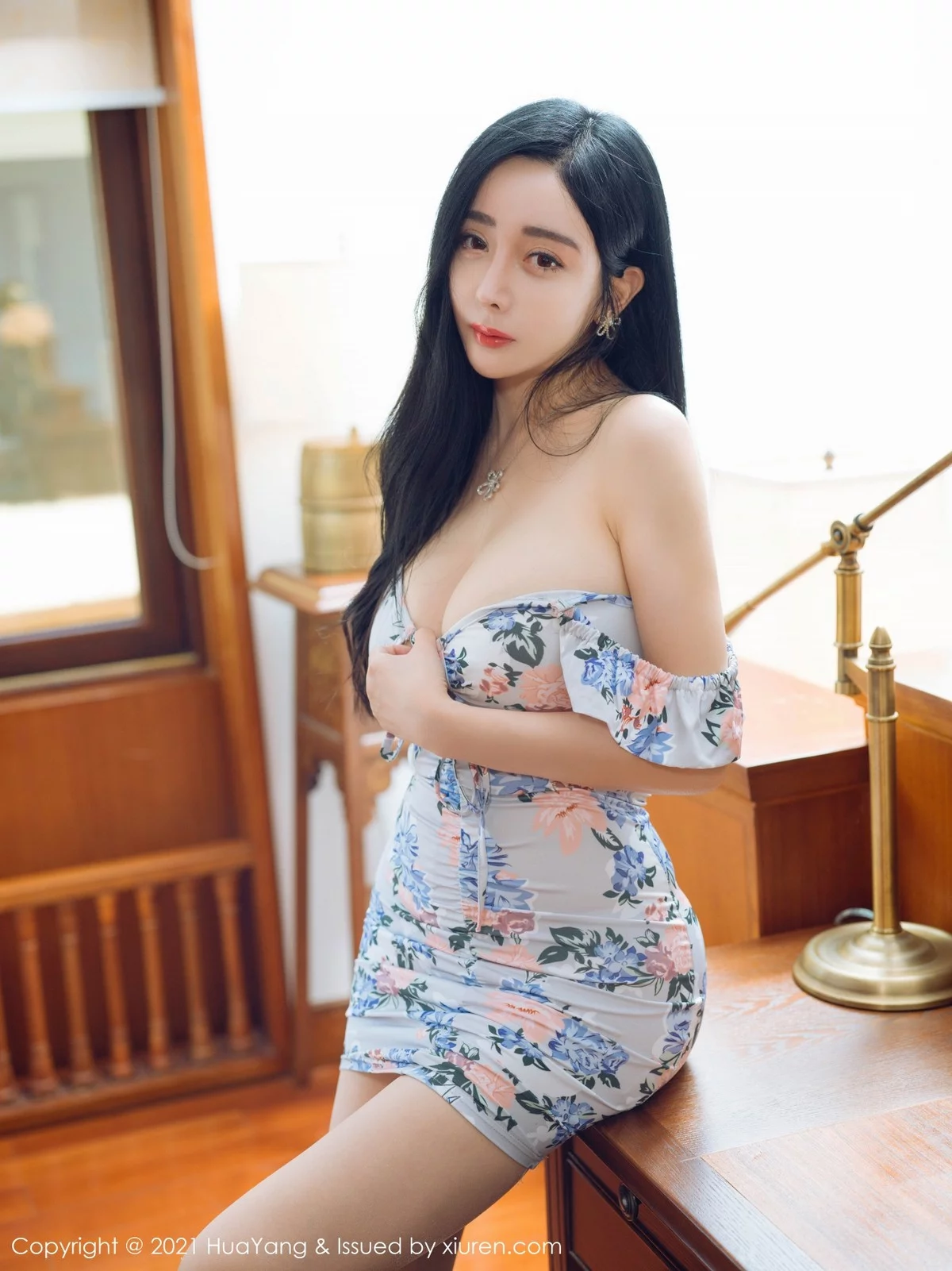 [HuaYang花漾]Vol.453 模特允爾西双版纳旅拍私房绚丽碎花裙低胸秀丰满身材诱惑写真45P