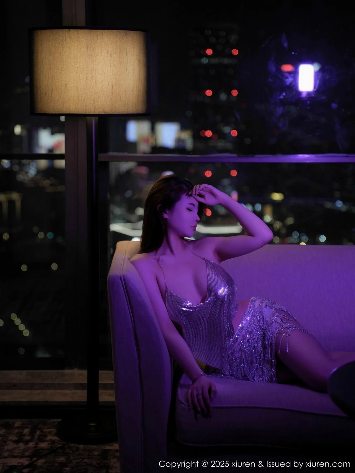 [XiuRen秀人网]No.9703 模特甜妮私房性感浅色金缕服饰配超薄灰丝秀丰腴身材诱惑写真80P