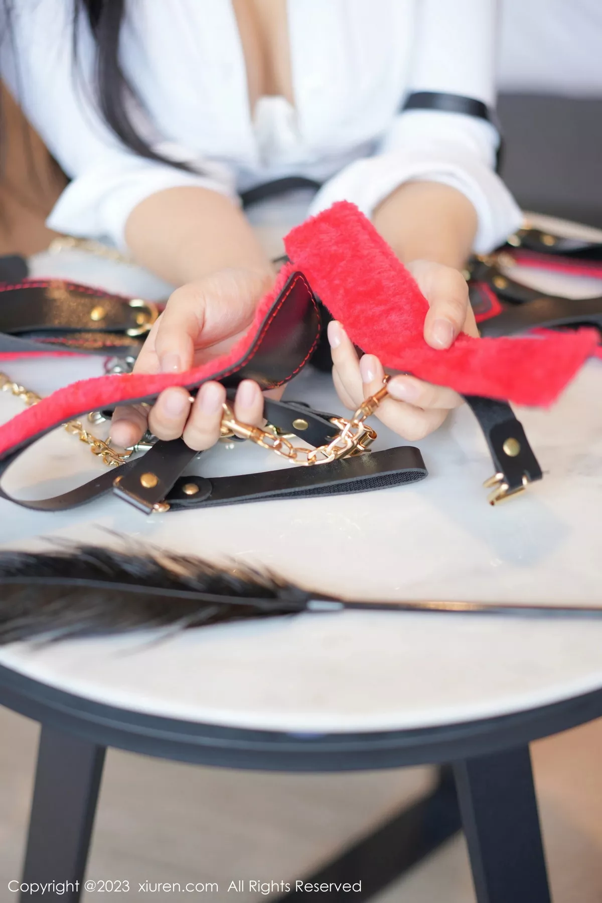 [XiuRen秀人网]No.7678 模特谭小灵性感白T配黑短裙露黑丝吊袜秀惹火身材完美诱惑写真99P