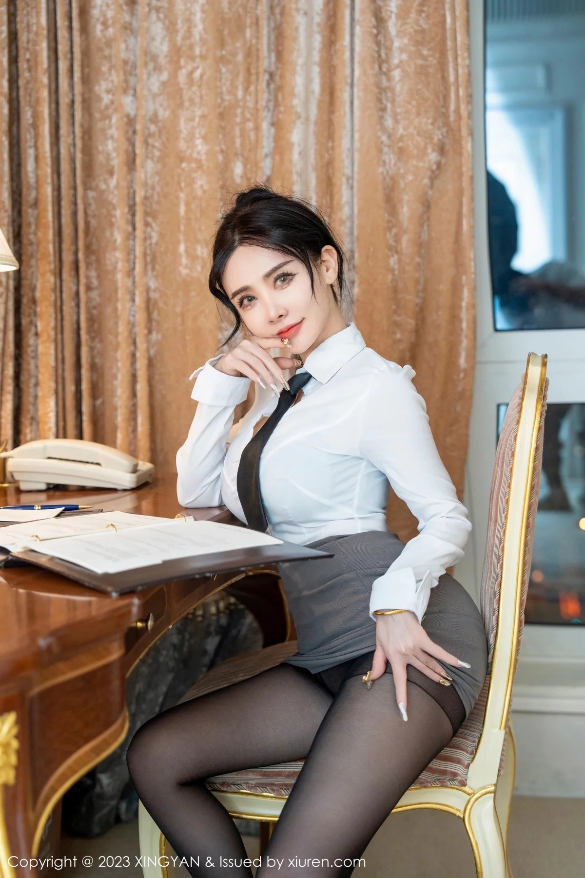 [XINGYAN星颜社]VOL.182 模特潘娇娇性感白T配灰短裙露黑色轻透内衣秀巨乳肥臀诱惑写真82P