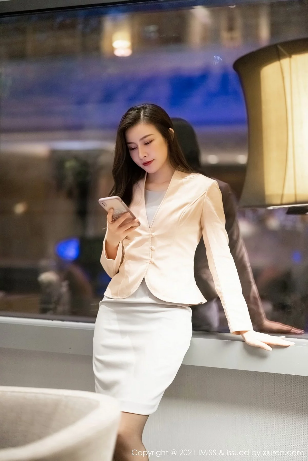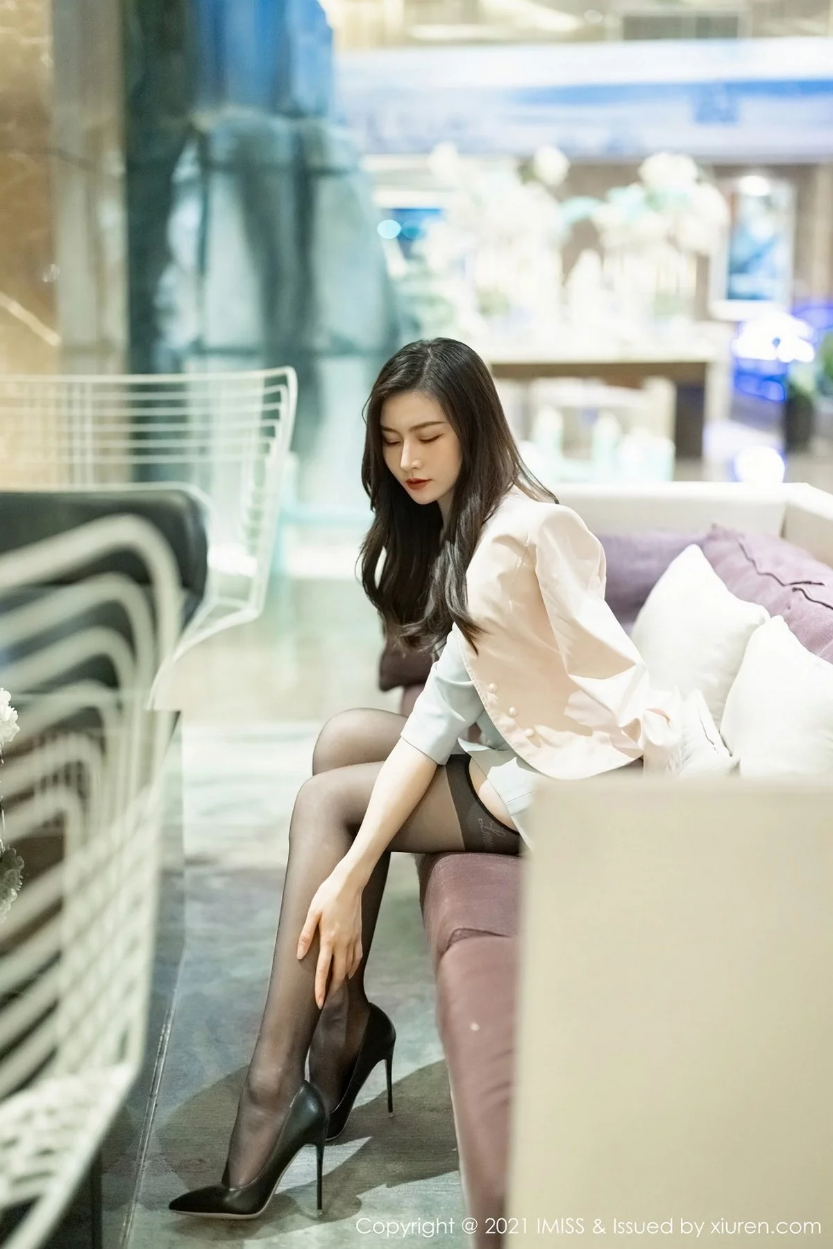 [IMISS爱蜜社]Vol.551 嫩模杨紫嫣Cynthia职场0L典雅服饰露蕾丝吊袜秀翘臀美腿诱惑写真60P