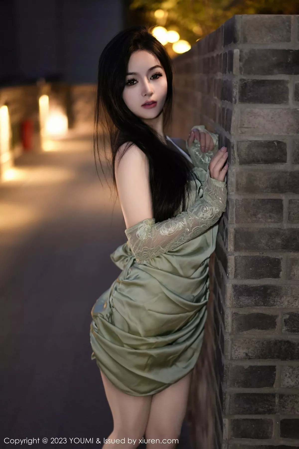 [YouMi尤蜜荟]Vol.1006 模特谭小灵性感果绿连衣裙露白色蕾丝内衣秀惹火身段诱惑写真77P