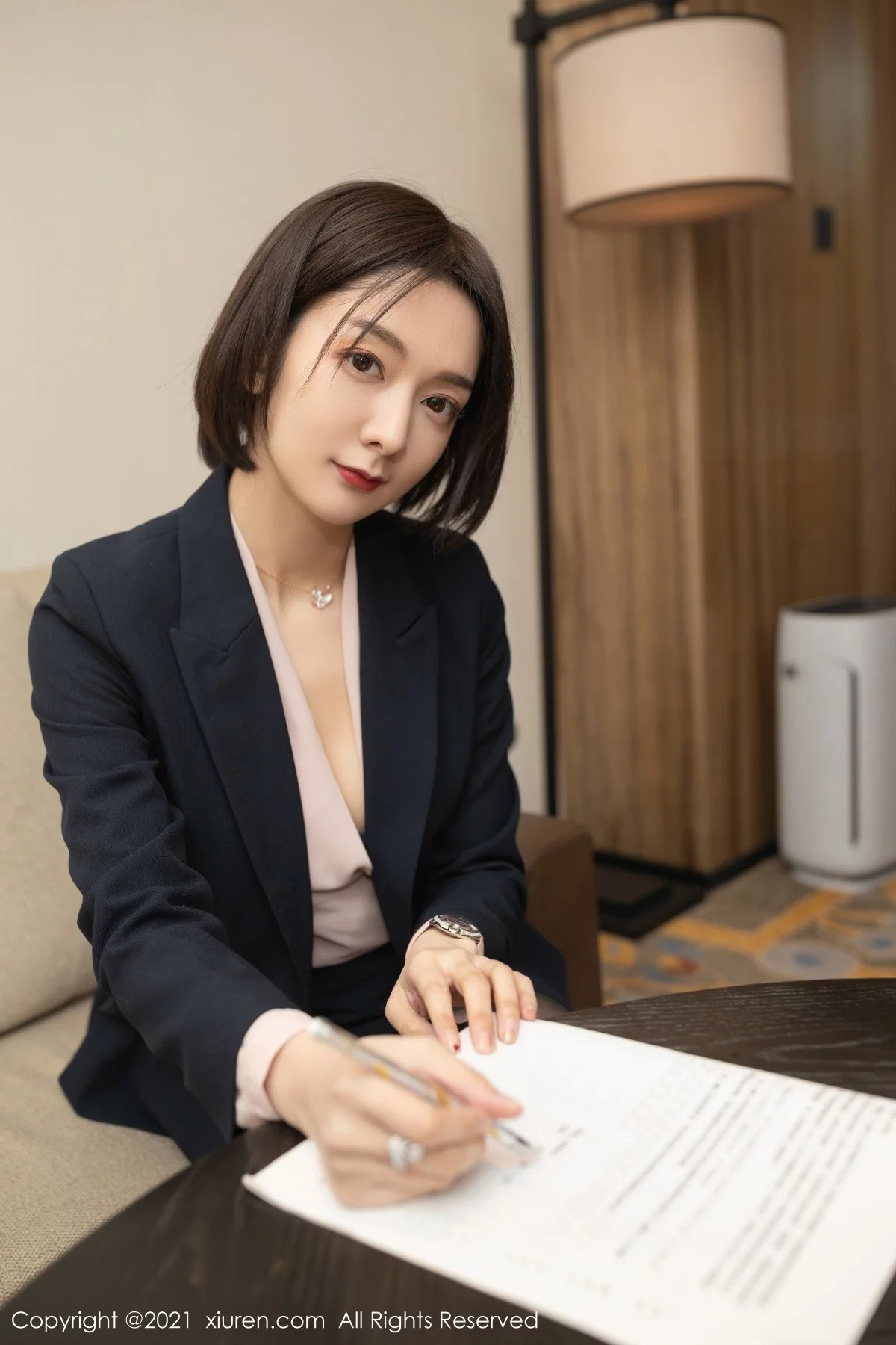 [XiuRen秀人网]No.3745 女神Angela小热巴保险销售主题开档黑丝裤袜秀翘臀美腿诱惑写真77P